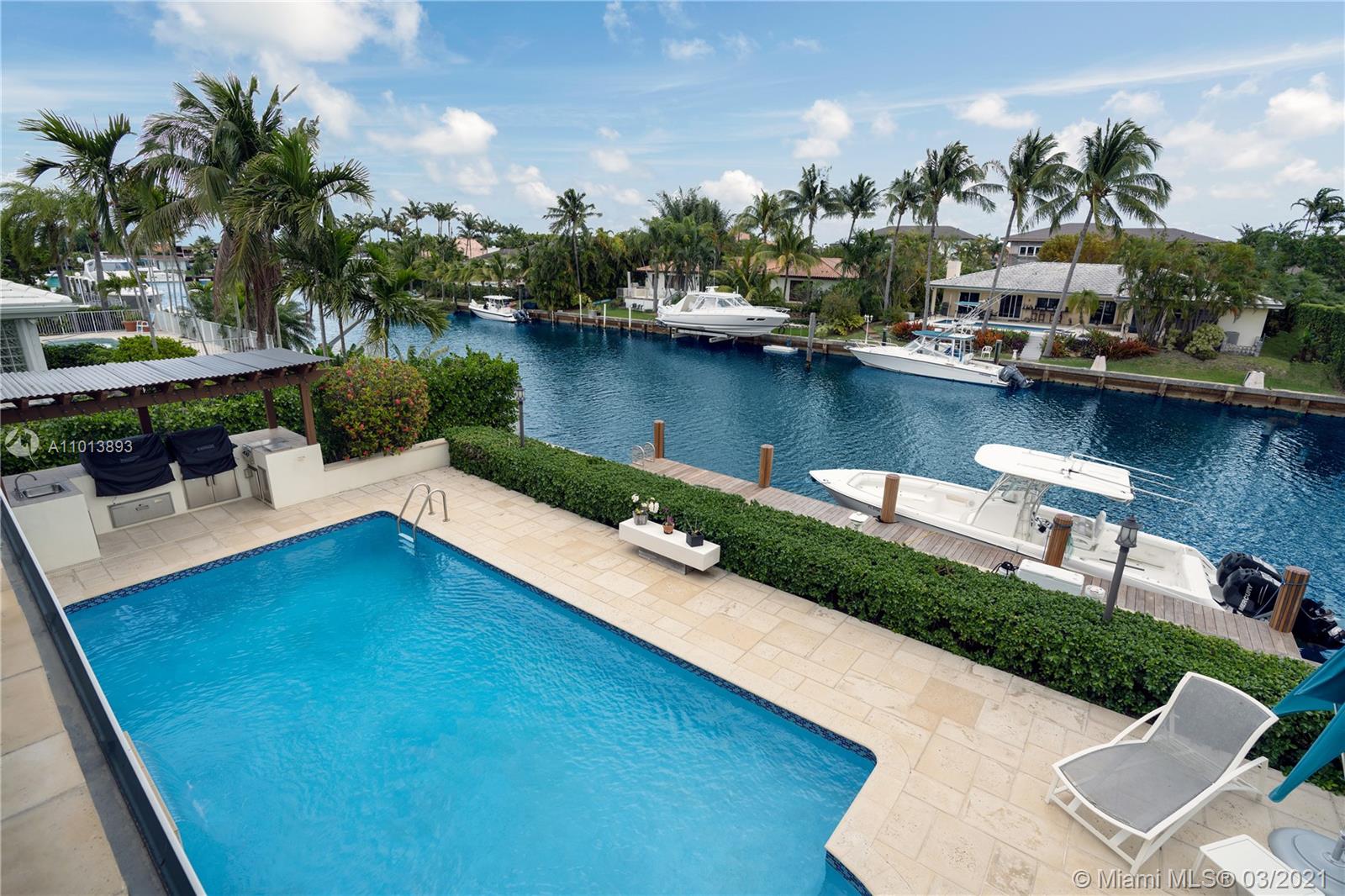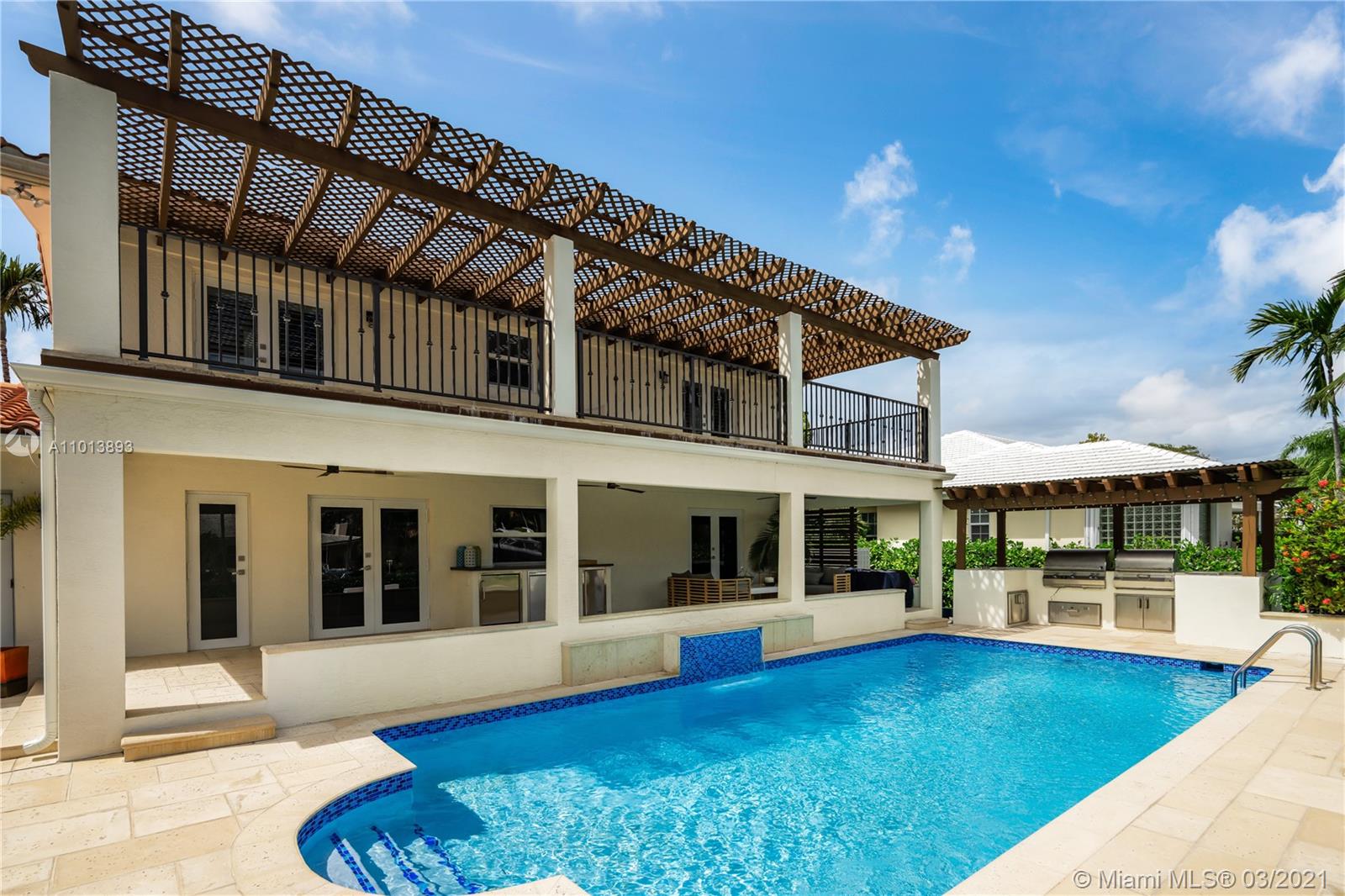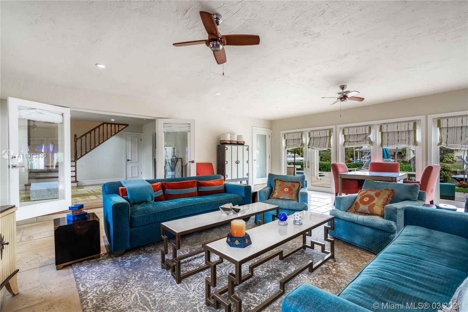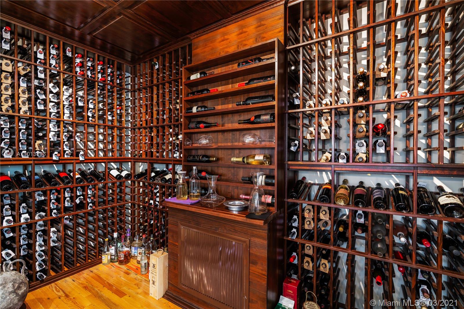 Impressive waterfront Gables by the Sea remodeled two-story home. Enjoy no bridges to Bay in this coveted guard-gated community. This home features 110’ waterfront w/seawall, boat davit, brick paver circular driveway, incredible walk-in glass encased temp-controlled wine cellar for 1000+/- bottles, hardwood floors upstairs and down, stunning neutral concrete tile & inviting fireplace in oversized Family room that overlooks the large covered terrace, pool and canal. Wide open covered terrace with Summer Kitchen equipped with top-of-the-line barbecues, mini-fridge and ice maker – perfect for entertaining and enjoying the bay breezes. Master suite + 2 bedrooms/1 bathroom are upstairs, & 1 en-suite bedroom is downstairs. Whole house generator. Home remodeled in 2014. Dock was redone Jan. 2021.