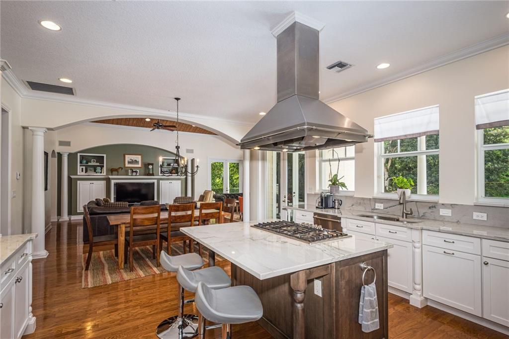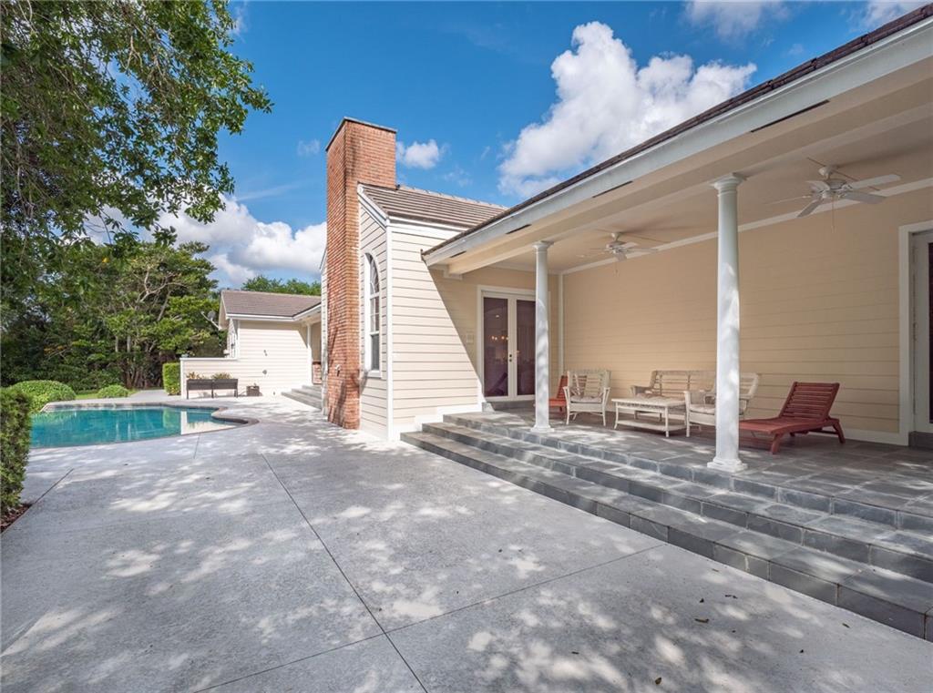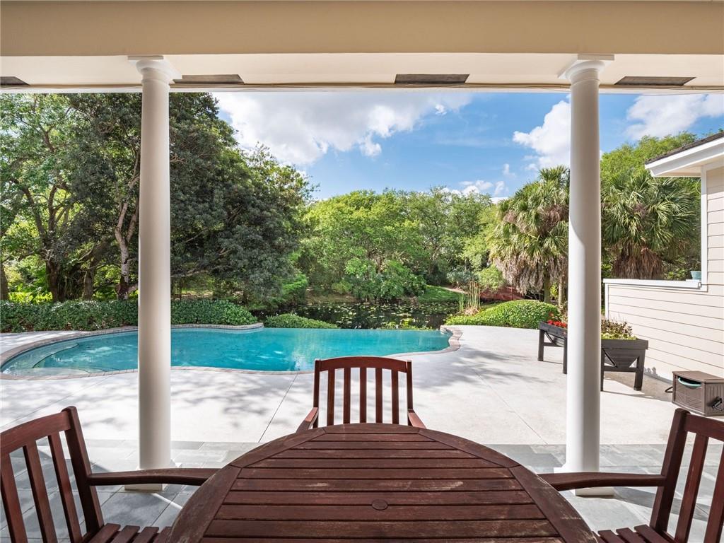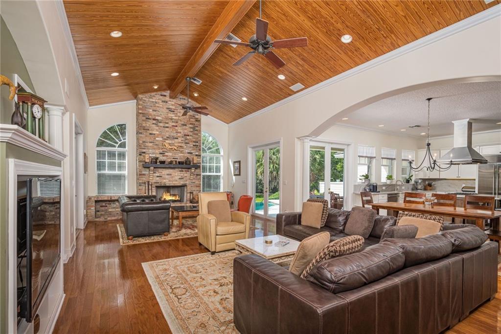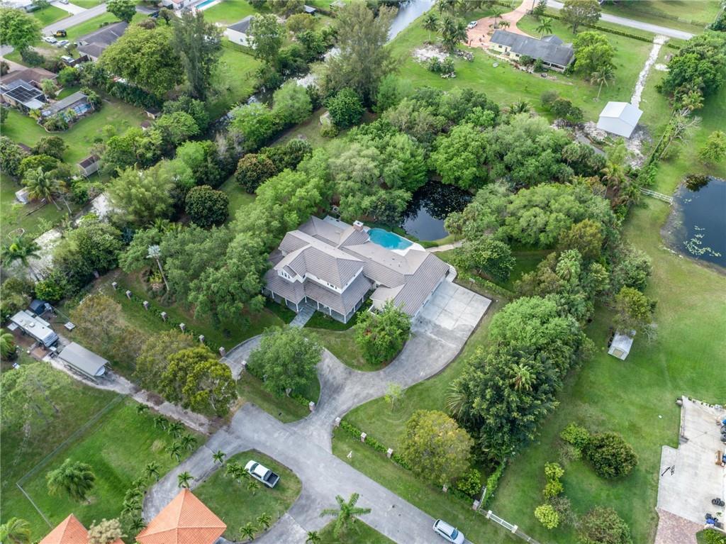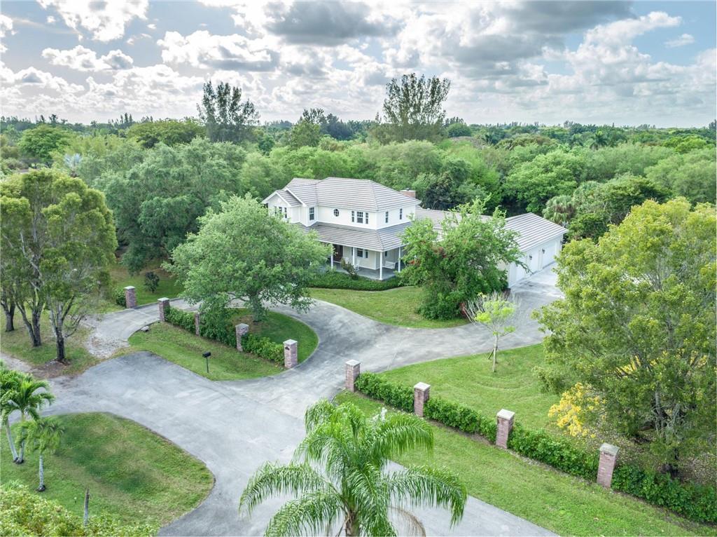 Exquisite Southern Home w/Wrap-Around Porches on 2.5-Acre Private Estate in Sought-after Southwest Ranches! Warm & inviting curb appeal the moment you set your eyes upon this beautiful home set in a storybook garden array of Oaks/Pine trees, fruit trees & butterfly vegetation. Impeccably maintained spacious interior featuring shimmering wall-to-wall wood floors, accented by the finest of finishes in white panel doors, crown molding & touches of wainscot throughout. Picturesque views of the botanical gardens from every impact window & French door adorning this masterpiece home. Showcase Great Room w/tongue & groove wood ceiling & stone wood burning fireplace is the perfect setting for family gatherings overlooking the infinity pool w/waterfall, serene pond views & grabble walking path.