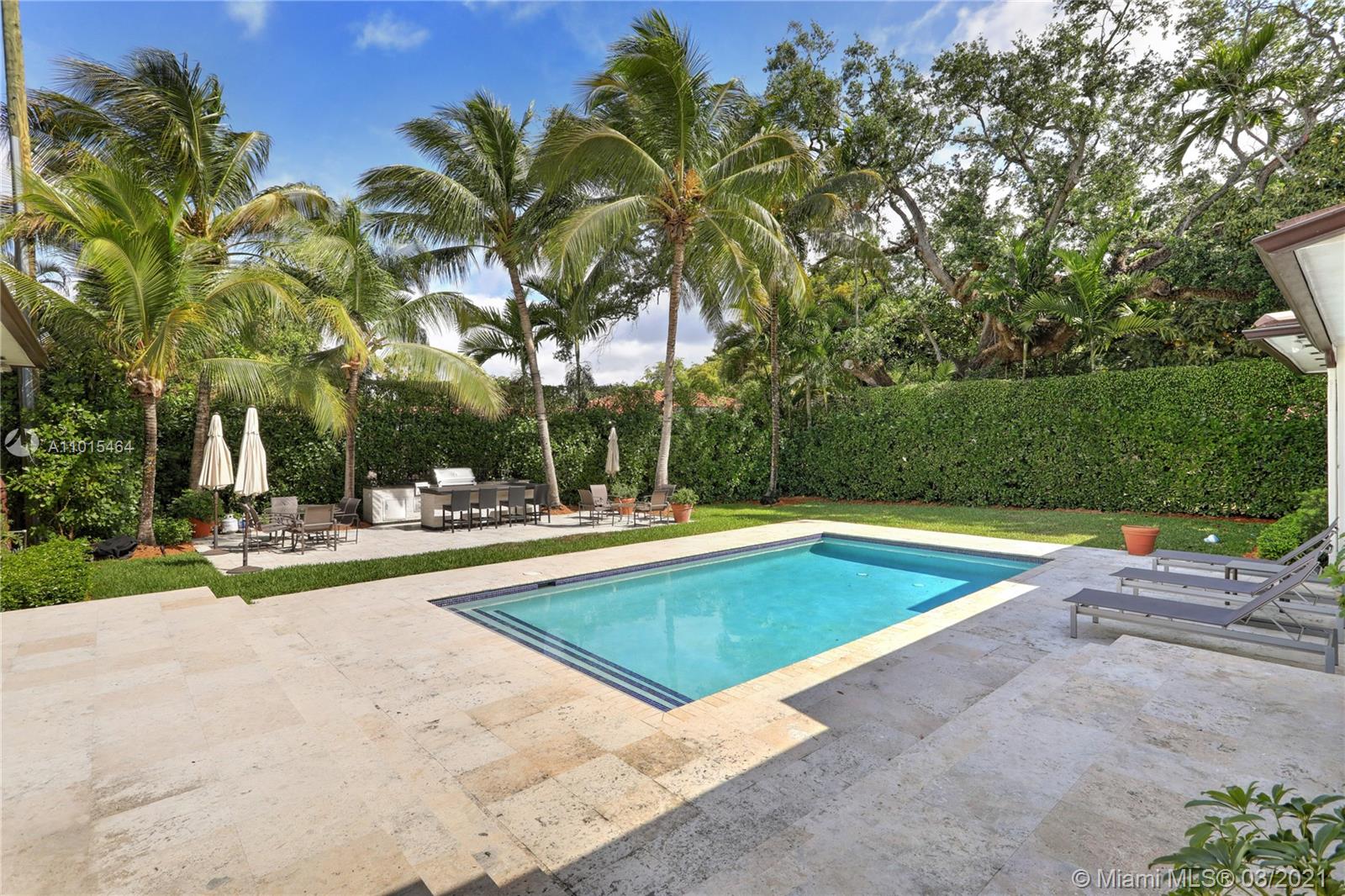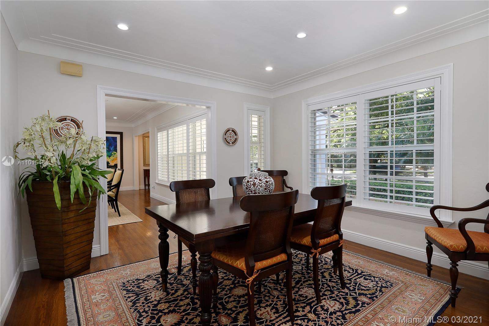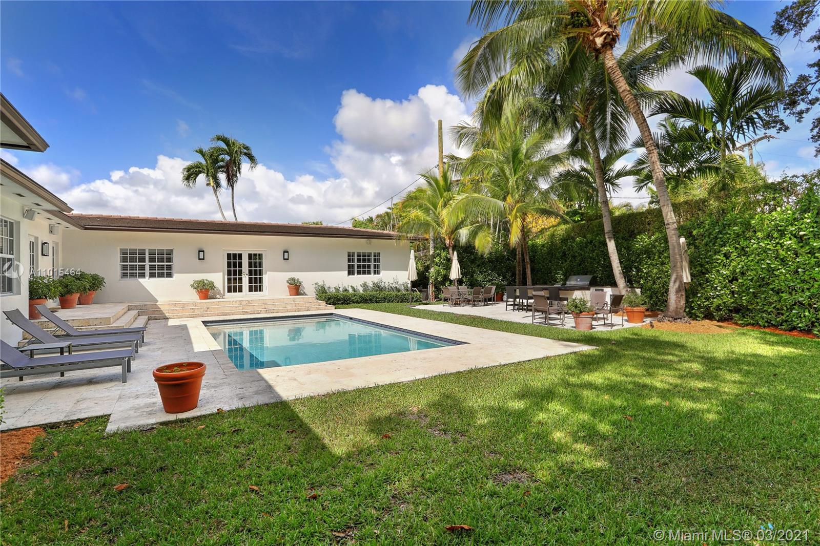 Enjoy life in one of the finest neighborhoods in Coral Gables, The Golden Triangle, in this picture-perfect 4 BR, 4 BA 3,537 SF home on a pristine 12,200 SF lot! The circular Chicago brick driveway leads to the covered front porch, a perfect spot for rocking chairs! Inside find the formal liv & din rms, open kitchen w/ high-end appliances & casual dining area overlooking the yard, + ample fam rm. The split plan features primary suite w/ French doors to the pool, 2 walk-in closets, & lge bath w/ 2 sinks, tub & shower, + one BR/BA to one side, & 2 more BRs & BAs to the other. Outside find a beautiful summer kit overlooking the pool & ultra-private yard. Newer roof, all impact glass, plaster moldings, plantation shutters, wood & marble floors, & much more, this home is too good to be true!