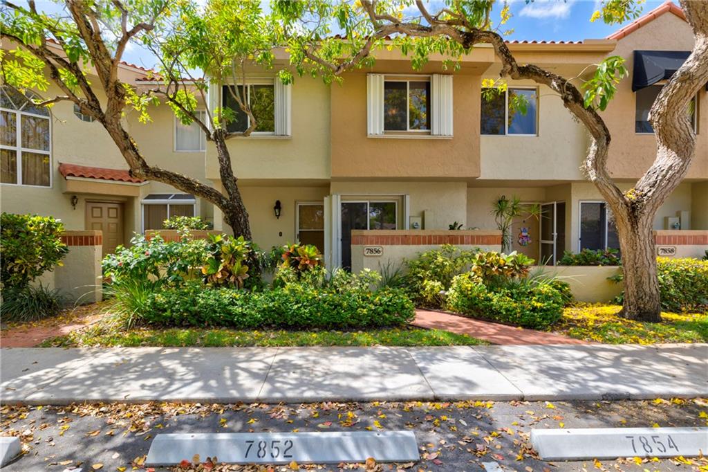 Gorgeous 3 bedroom 2 1/2 bathroom townhouse is situated on a quiet cul de sac in the desirable Dahlia neighborhood. This property has been tastefully updated with a new white kitchen with granite counter, all new stainless appliances. There is new durable flooring in the spacious living area. The screen porch has an additional outdoor patio. Large Master bedroom with vaulted ceiling has a king size Murphy bed, a wall closet and a walk in closet. Very nice tiled large shower in master bath with wood bathroom vanity. Two additional bedrooms upstairs with hall bath to share. Accordian hurricane shutters on all windows for your protection. It includes 2 assigned parking spots and abundant guest spaces for your busy lifestyle. Great Location in Plantation with shopping and restaurants nearby.