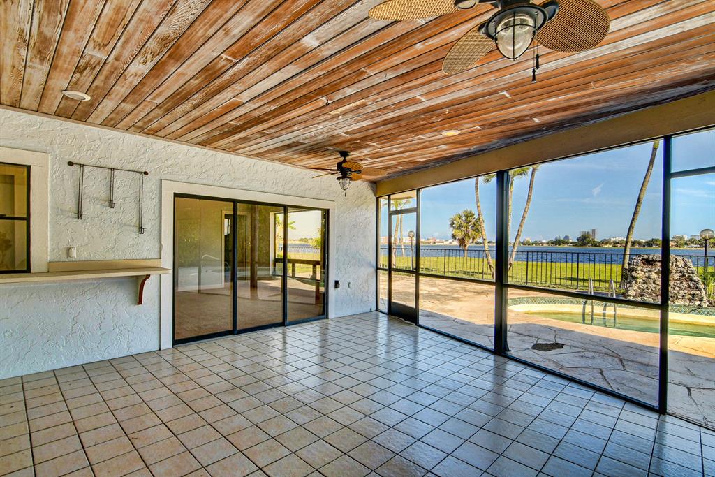 120' DIRECT WATERFRONT LOT with spectacular water views. Watch sunrises over Lake Mangonia, one of our WPB fresh water reserve lakes where you can sail, kayak and longboard. This home has two bedrooms on one side of the home and four bedrooms on the other side. Vaulted volume ceilings and coral fireplace. Lawn is watered by fresh lake water. Cook with Natural Gas: Stove, Barbecue. 2019 New Roof made by DaVinci Roofscapes Composite roof tiles. A/C Units, 2018 & 2016. Community Tennis Courts. President Country Club Estates is located in the only gated golf community east of 1-95 in West Palm Beach. Golf and Social Memberships are OPTIONAL, no mandatory fees.