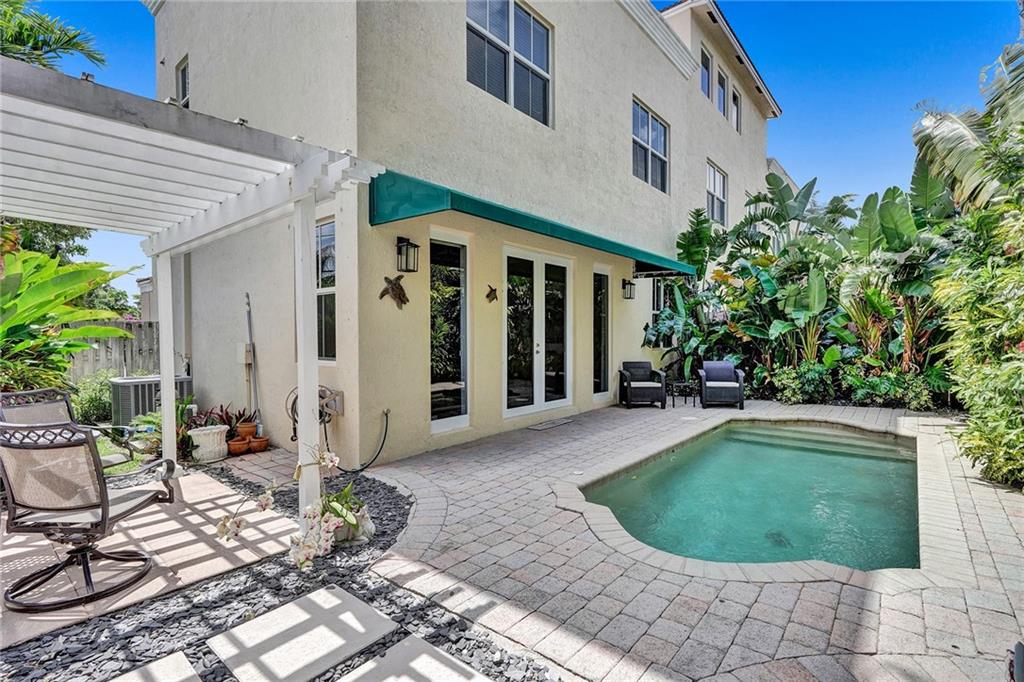 Fantastic tri-level townhome in the heart of Coral Ridge. This 3 bedroom 3.5 bath corner unit townhome boasts an oversized rooftop terrace and 2 car garage. Impact windows and doors. Bright and open first floor with gourmet kitchen featuring granite countertops and stainless steel appliances. All bedrooms located on the second level. Huge master suite features private patio, walk-in closet and bathroom with dual sinks and separate tub and shower. Third floor with loft area and full bath. Large rooftop terrace with beautiful city and water views. Lushly landscaped backyard with pool and patio space. Located in Bayview Elementary school district. No HOA.
