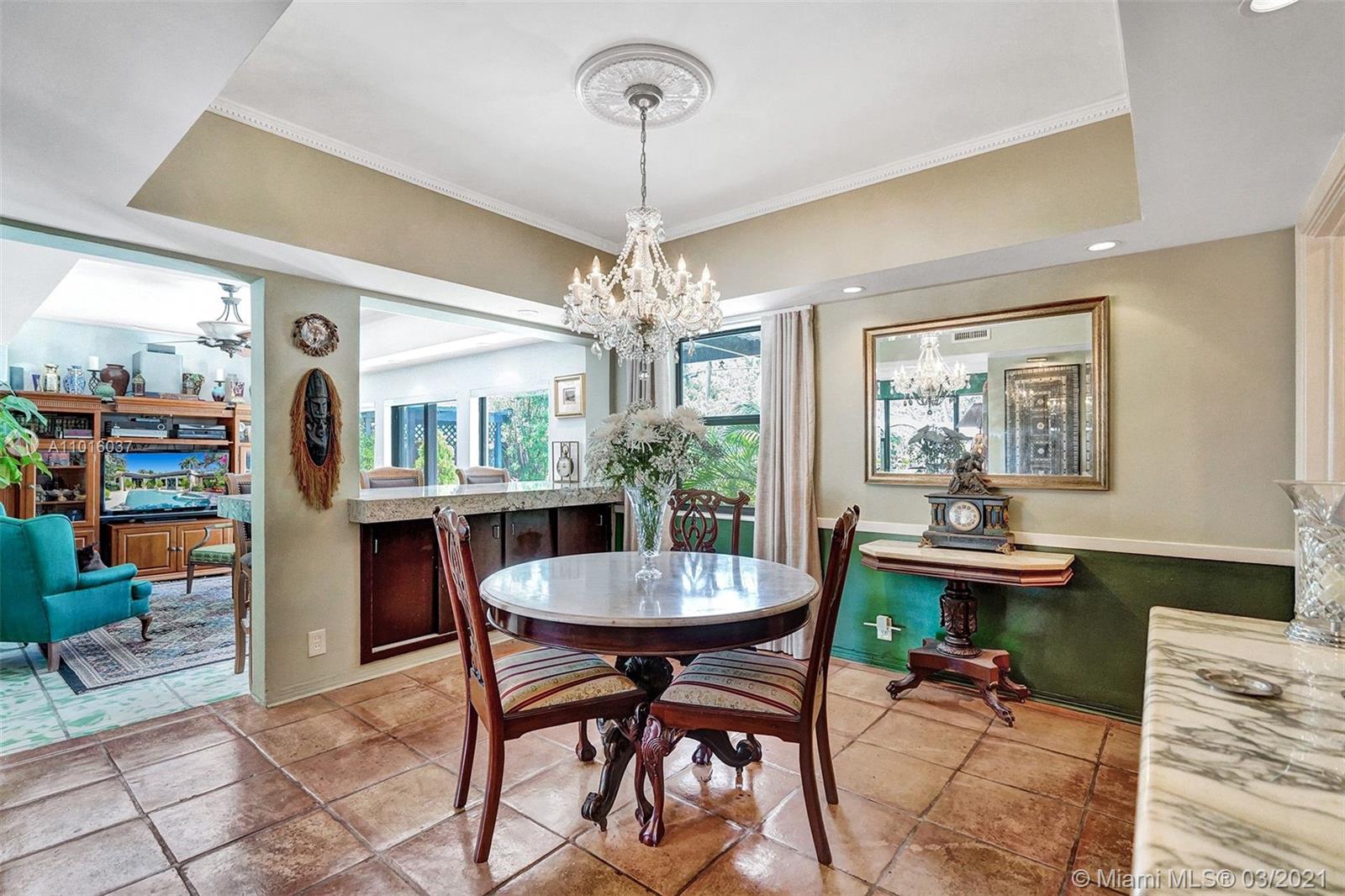 Enjoy your privacy and a fabulous backyard / tropical garden in this house located in a quiet street in a gated golf course community in Normandy Island and Miami Beach Just few blocks from shopping, dining, parks and public transit. The spacious kitchen has been upgraded with granite counters and stainless steel appliances, and dining and living areas are extremely spacious. All high impact windows. Florida room open through a fully fenced backyard with large patio, heated pool, Jacuzzi and a lush tropical garden. One-car attached garage and room for three more cars in the driveway.