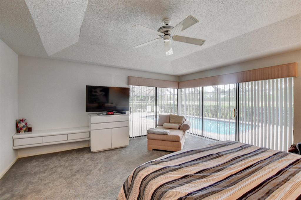 Here is your opportunity to buy a 3 bedroom, 3 bath pool home with a beautiful golf view. Split floor plan with vaulted ceilings. Home has been lovingly cared for and is waiting for a new owner to make it their own. Boca Woods has a 24 hour manned gate, features 2 championship golf courses, driving range, putting green, tennis, pickle ball, cards, clubs, fitness center and so much more. Golf equity is required.