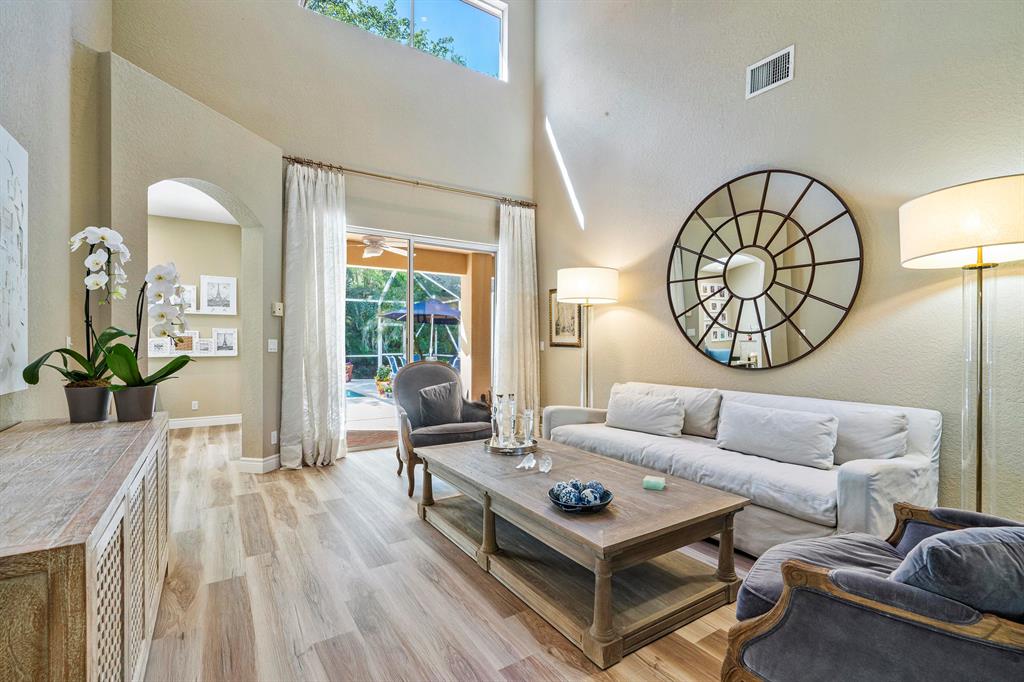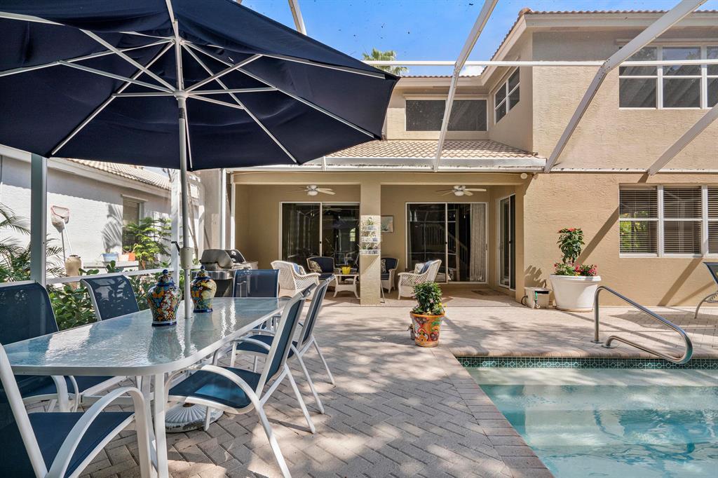 Rarely available 5 bed 3.5 bath home in a desirable Boca Raton Gated community. New Luxury Vinyl Flooring throughout main living space. Oversized master bedroom with large walk in closet all on main floor. White kitchen with granite counters and stainless appliances Kitchen with open great room looks out on your private yard and beautiful pool with a very spacious, oversized patio. Patio is completely screened in. Upstairs boasts 4 large bedrooms and 2 full bathrooms. Newly painted exterior, landscaping and great curb appeal. A-rated Boca schools. Can even walk or bike to Elementary and middle school. Manned Gated community, clubhouse, fitness center, tennis, basketball, community resort style pool.