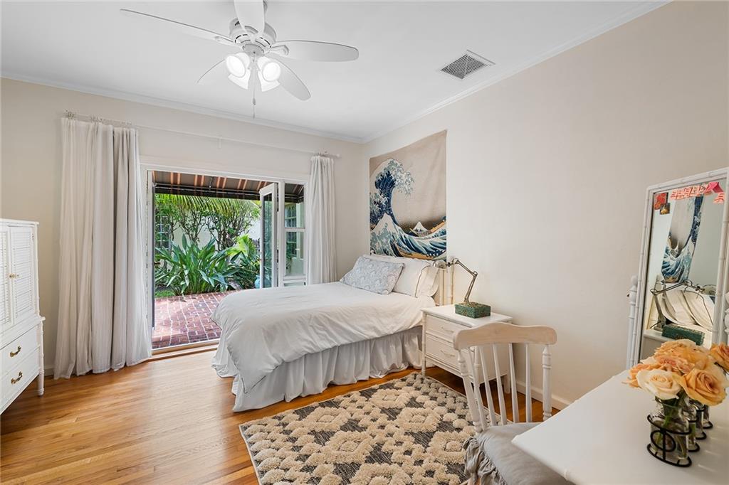Story book charm abounds in this lovely (!!) 3/bed 2/bath home (primary bdrm has ensuite bath) located on one of the prettiest streets in Rio Vista. Stained glass entry door welcomes you into the family/foyer w/daybed swing(!!) Home has retained its original hardwood floors, coral stone wood burning fireplace & French doors which grace the entry foyer, living & dining rooms filing the rooms with ambient sunshine & a guest bedrm opening on to a private patio. Centrally situated is the kitchen with natural gas cooking & new appliances (2018) Just off kitchen is a family fun room w/xtra pantry storage! Private hall to bedrms & bath. Grand (98’x125’) lot is lush w/foliage, has paved pathways leading to glistening pool w/pergola, 1/1 guest house with vaulted ceilings & a laundry/storage shed.