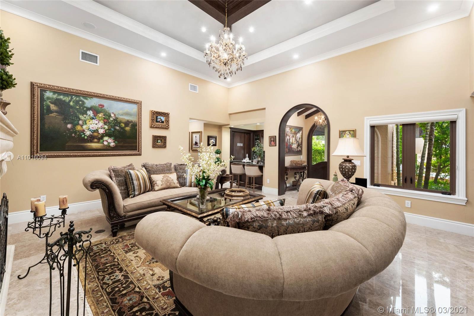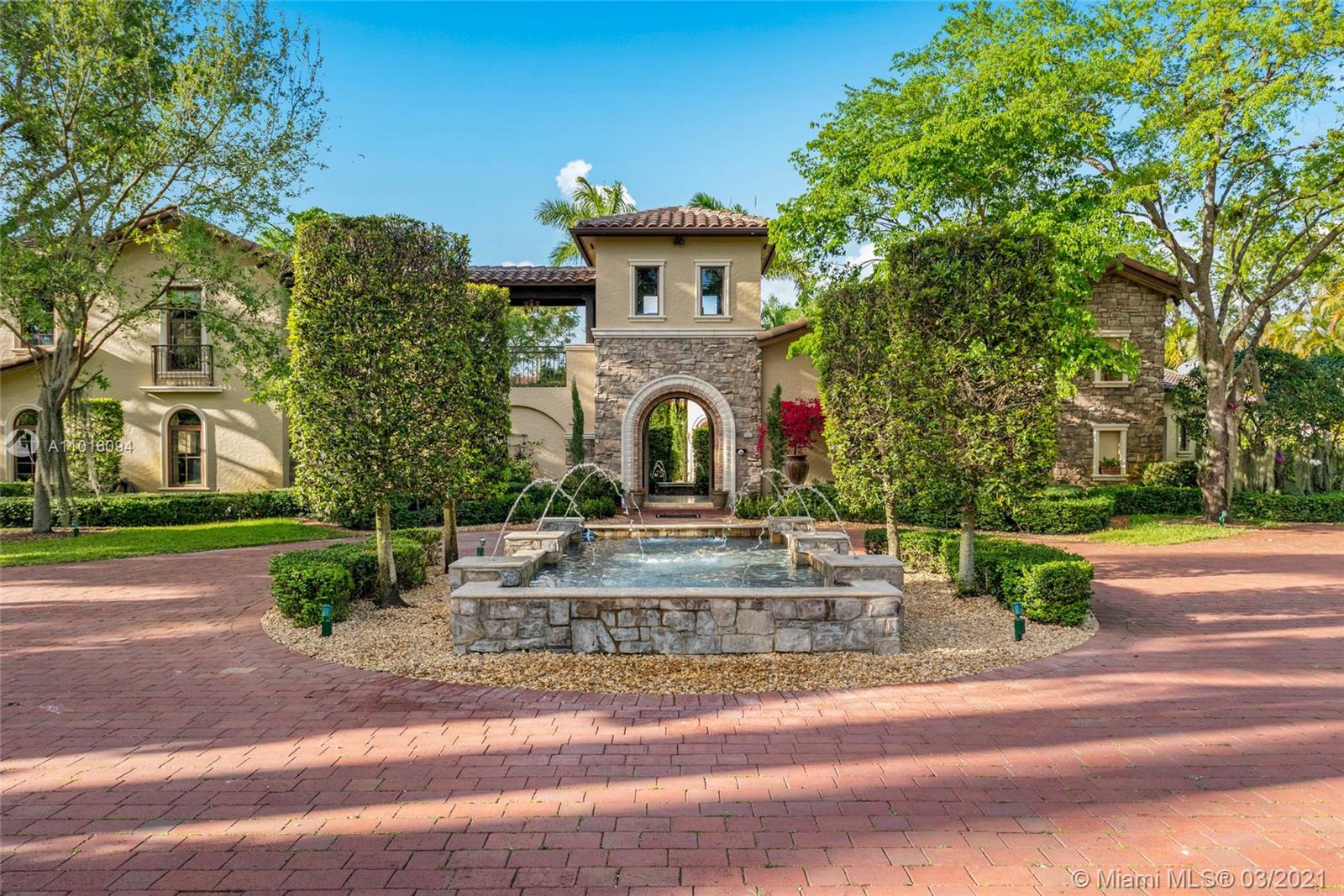 Breathtaking and Extraordinary! Utterly rich in architectural design & Tuscan-inspired estate, set on a picturesque,lushly landscaped 1.12 acre,surrounded by amazing wonder of nature under mature oaks & majestic palms.Superlative designed w/interior courtyard encompassing of grand main house w exquisite & elegant living & dining rooms. High ceilings, wine cellar, bar, epicurean gourmet kitchen w/all top-of-line appliances, sunny breakfast morning room. Fabulous and spectacular family room.Sumptuous master w/lavish bath! Split 3 ensuite children quarter adjacent to full guest suite w/livingrm & kitchenette! Spectacular oversized patio with summer kitchen, stunning pool/spa, fountains! Home theater, staff quarter! Finest & detailed appts in every turn! Truly a piece of paradise to call Home!