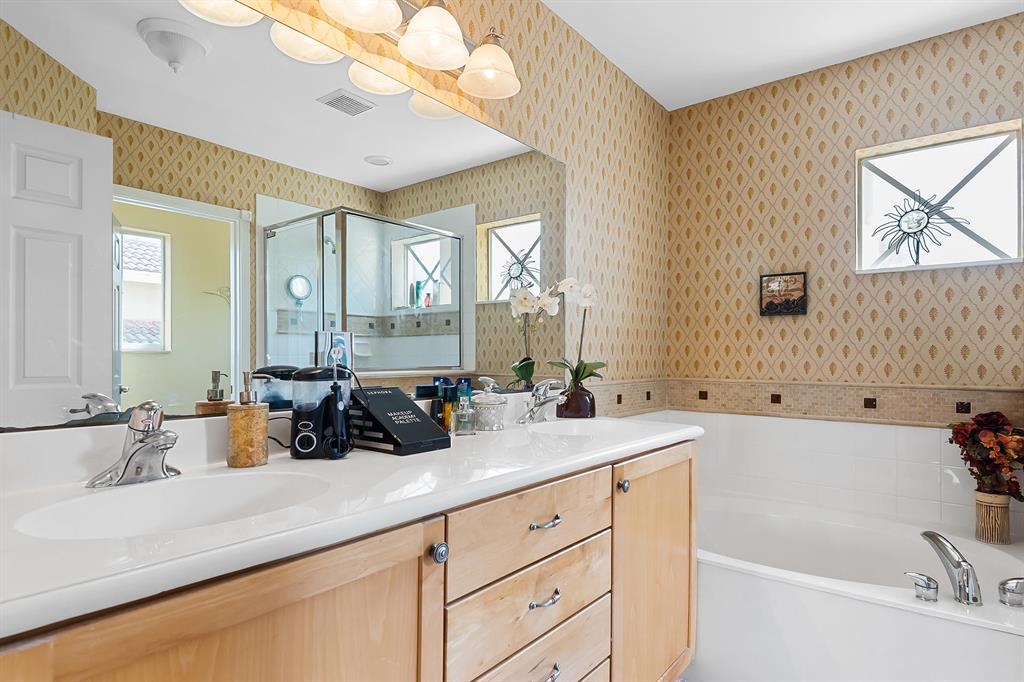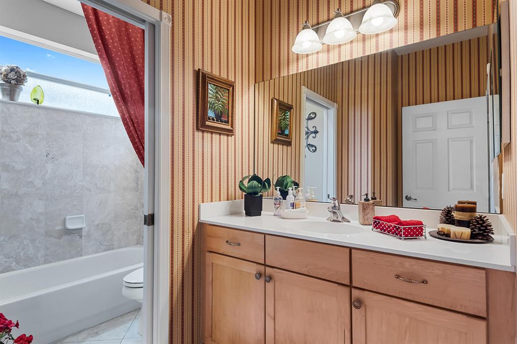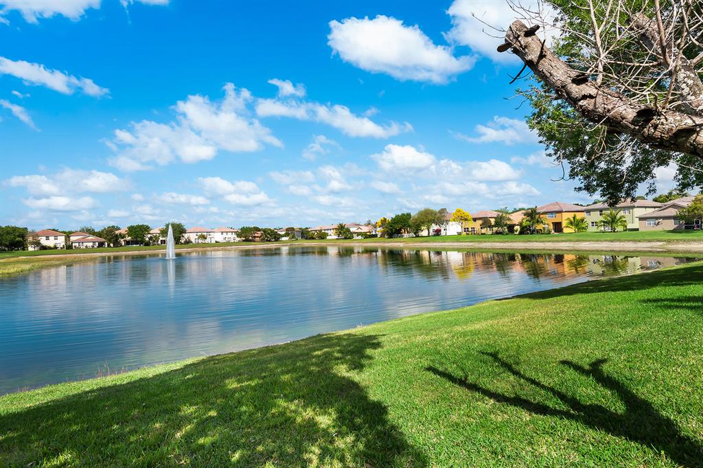 Light and bright 3 bedroom, 3 (full) bathroom home located on a price lot with a view of the peaceful water. This home has an office downstairs and a loft upstairs that could both be used as bedrooms if needed. Crown molding and tile throughout the downstairs. Open kitchen with shaker cabinets, granite counters, and stainless steel appliances. The expansive master bedroom as a walk in closet with a closet system. The master bathroom has double sinks, a bath tub, and a shower. Accordion shutters on the 2nd story windows and metal shutters for the 1st floor windows/doors. A/C is 3 years old.