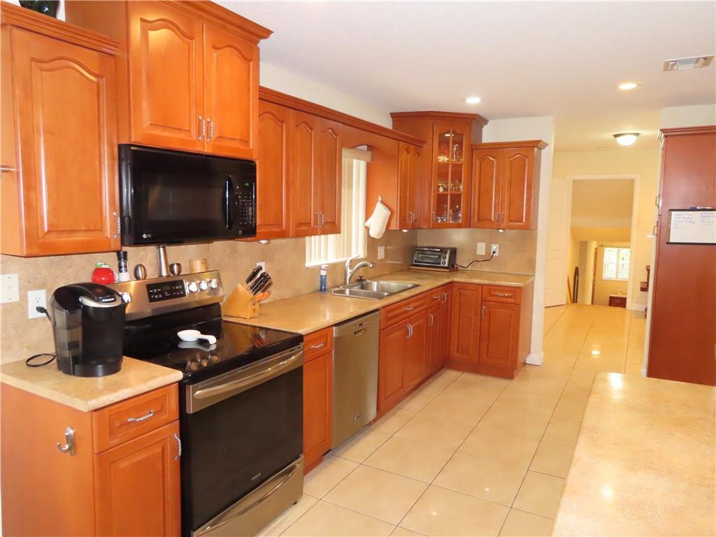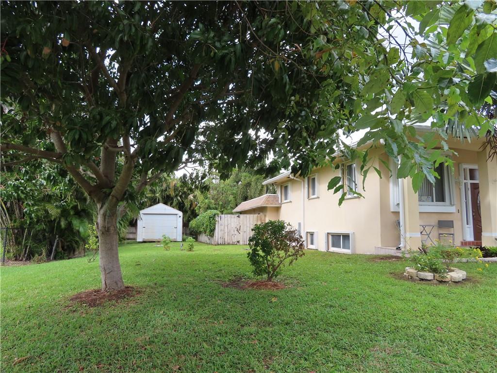 One of a kind on huge lot! Tons of parking - bring the boat, trailer, or RV - bring all 3! Circular drive plus 2 car carport & separate driveway. House re-built in 2007 after a fire. Tri-level home with basement storage. Eat-in kitchen features wooden cabinets & stainless steel appliances. Private Master suite on ground level may be accessed from house and/or has private entrance. Large two story deck overlooking free form pool & paver patio Yard is a lush private tropical oasis with fruit trees, heliconia, bamboo & space to spread out. Dual A/C. Additional storage shed on side (outside fence) has electric. Accordion shutters for house windows but not enclosed porch (lanai). Lanai cooled with wall unit. Septic tank on west side of house replaced in 2019. A/C new in 2019.