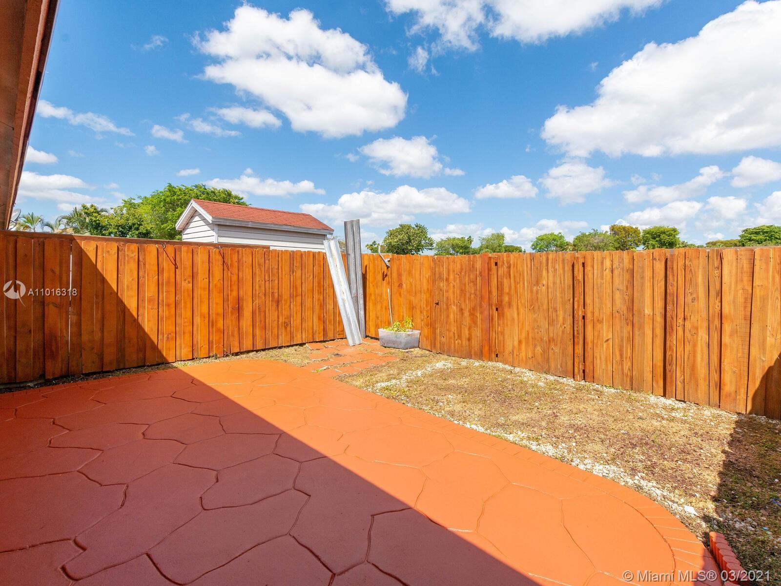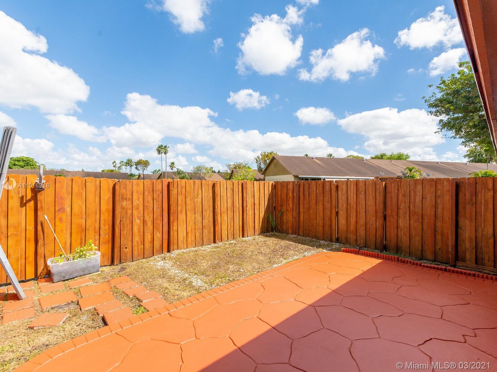 Charming 2 bedroom, 2 bath gem townhouse in Country Lake Manor. The property offers a wonderful open layout, spacious kitchen with plenty of cabinets and convenient laundry space with stainless steel appliances. The unit also has hurricane shutter and a private fenced in backyard for privacy and a cozy front terrace. The community offers 24 hrs security, tennis ball court, a clubhouse, pool, spa and a children's playground. This gem is conveniently located in a area surrounded by shops, schools, major highway and restaurants. Don't miss out this great opportunity.