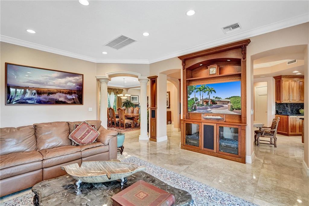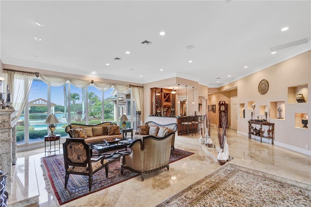 Windmill Ranch Estates home on 1.34 acre lot w/400ft lakefront. Single Story, 6,196sqft U/A, 5 bed & 6 full baths & 1 half-bath. Grand porte-cochere entrance & double Impact door entry. Breathtaking pool grounds & lake w/spectacular sunsets daily. Outdoor entertaining area w/oversized heated pool, pergola covered spa, fully equip summer kitchen & spacious fenced yard. All new PGT Hurricane Impact Glass Windows & Custom Impact Doors, Crown Moldings & Custom Built-In Closets in all bedrooms. Gas and/or Wood Fireplace. Owner’s Bathroom suite w/giant spa tub, custom shower, & dry heat sauna. Chef’s Kitchen w/commercial grade Viking & Sub-Zero Appliances, real wood cabinetry, ample walk-in pantry. Wet bar. Saturnia Marble Floors in all living areas & 4 Car Garage floor. Furnishings negotiable.