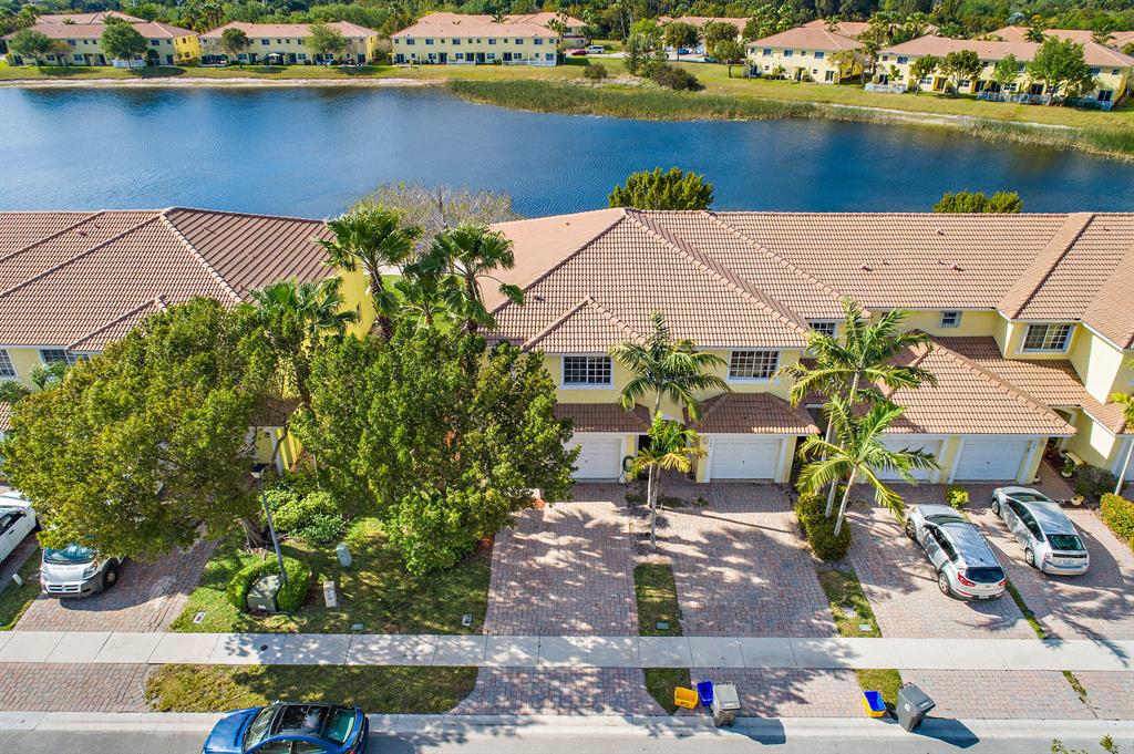 Beautiful 3 bedroom 2.5 bath townhome located on the lake in a quiet gated community. Tenant occupied until June 30th. New AC. This end unit has a one car garage with a double wide driveway. Updated kitchen with black stainless steel appliances. Front loading washer and dryer located upstairs conveniently close to bedrooms. Master suite has a large walk-in closet, with a double sink and vanity in the bathroom. Great breakfast nook that overlooks the lake with plenty of natural light and views of evening sunsets. This wonderful community has a pool, tennis courts and playground. Hurricane shutters are included. Great location, minutes to PBI airport, both major highways, beaches, downtown WPB and shopping centers.