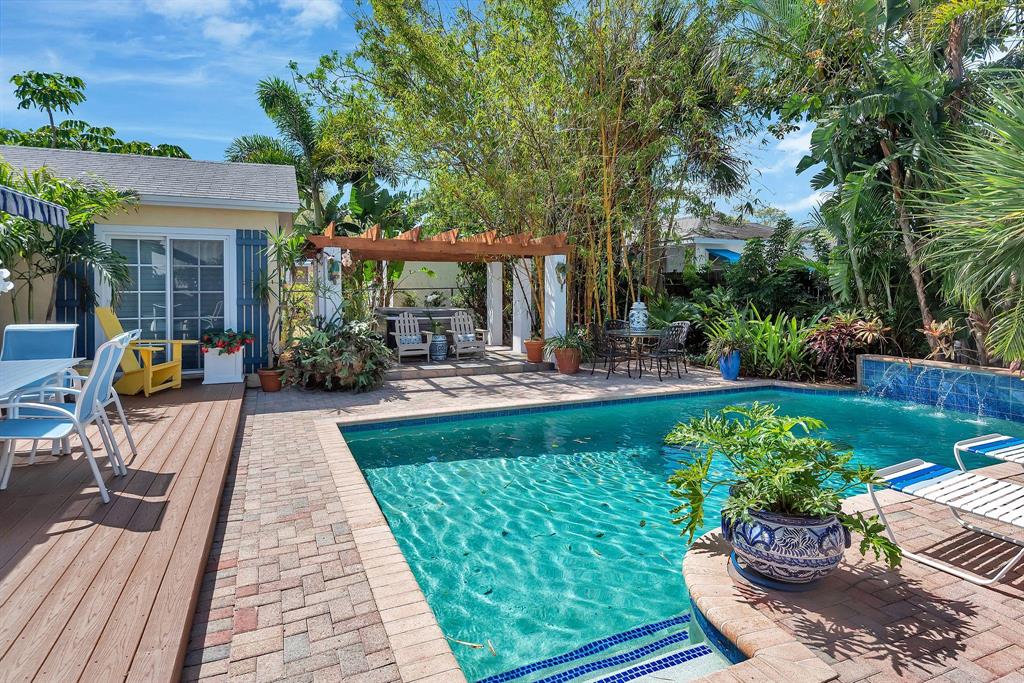 Yes, it has it all...Three spacious bedrooms and two stunning baths. Yes, it has a pool, patio, hot-tub and cabana house/she shed. What a perfect home for any situation. You will be blown away with the design and thought that went into making this beautiful house a home. Yes, the owner would even consider selling it turn key with everything, minus a few pieces of art and personalities at the right price. Perfectly situated and convenient to everything from I95, shopping, the beach and all West Palm has to offer. Only seven minutes to airport! This home is landscaped beautifully from the front to the back and has a very long driveway to accommodate you and your company when entertaining around the pool.