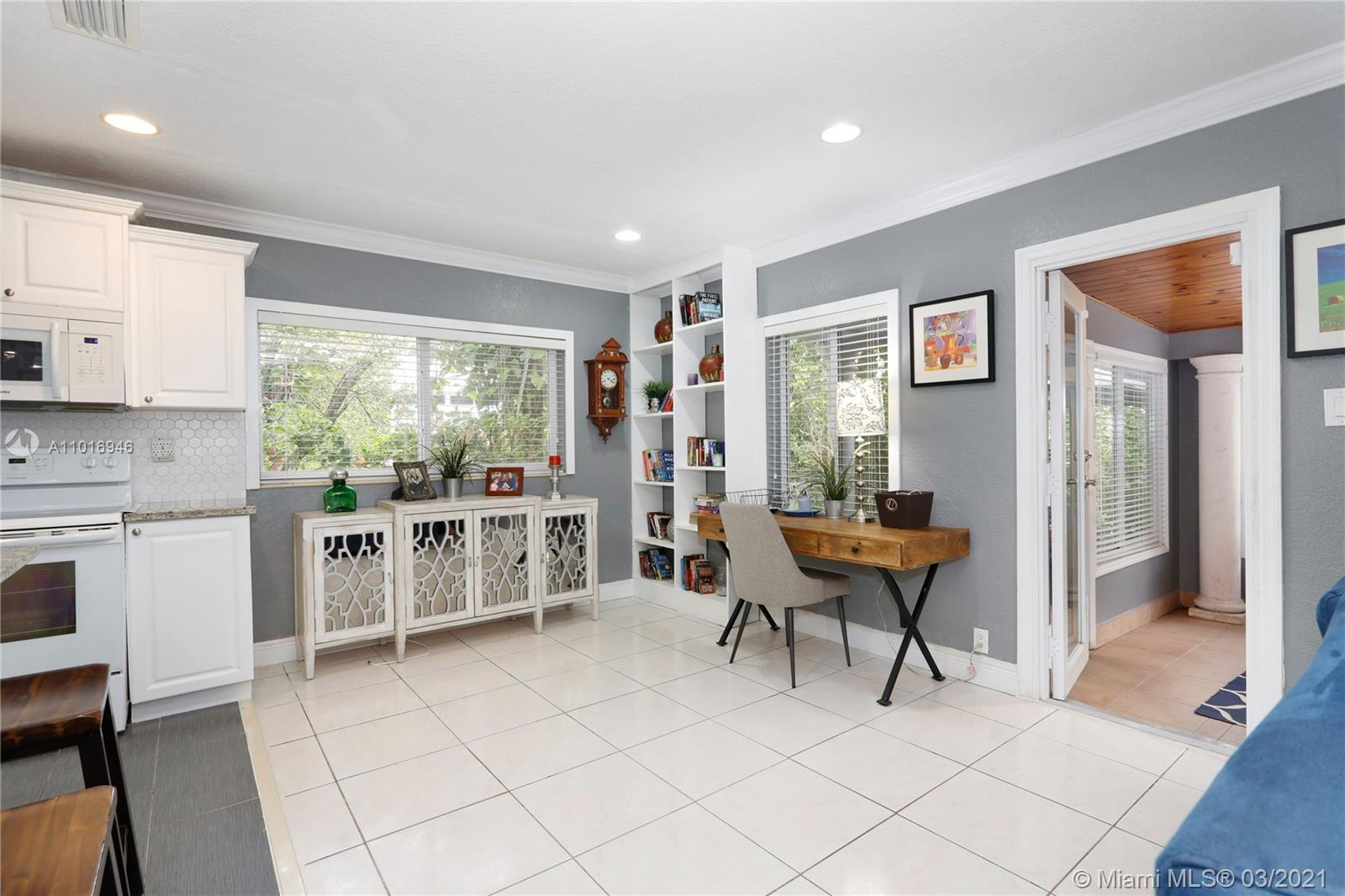 This lovely two bedroom home in highly desirable Coral Gables is flooded with natural light and sits on a quiet street lined with beautiful mature oak trees. From the cozy front porch, enter the spacious open concept living space, featuring a charming dining/living room and a newer open kitchen with granite countertops. Updated bathrooms, plantation shutters, all impact windows and doors, one car garage, separate family room/den/office, small covered patio and open outdoor brick area perfect for al-fresco dining and BBQ's. This well maintained home is centrally located, close to Granada Golf Course, Coral Gables Country Club, Venetian Pool, the Biltmore Hotel, UM, Miracle Mile shopping district, and Miami International Airport. A beautiful place to call home.
