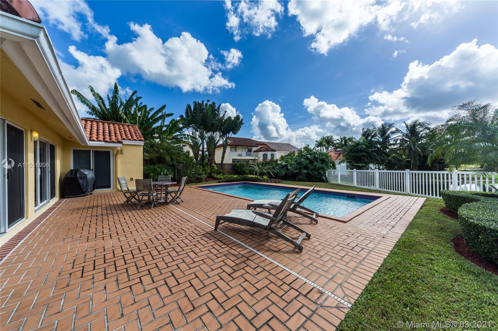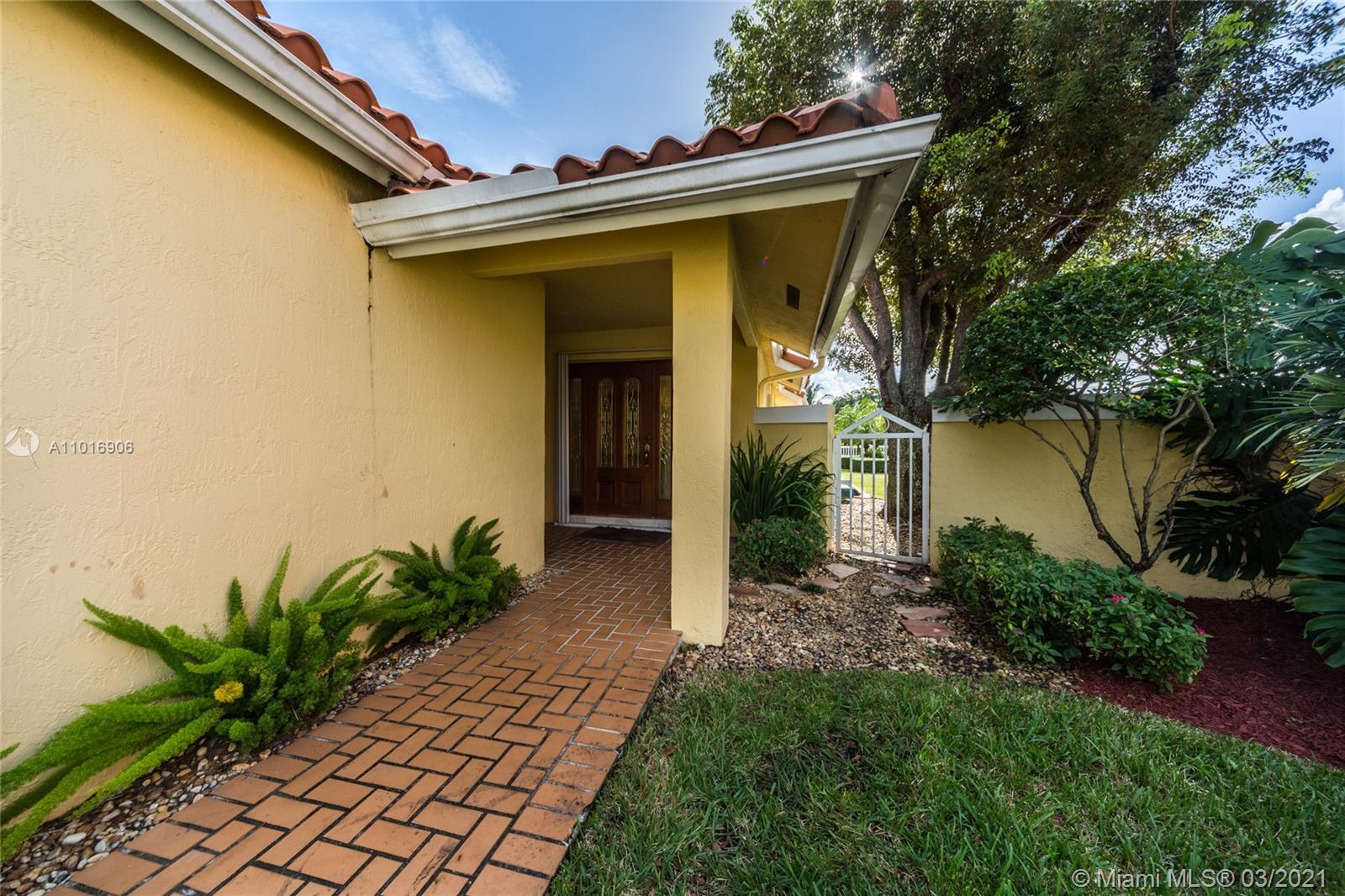 Doral Dunes. Beautiful one story lake view single home . Open floor, well maintained and ready to move in. 3 bedrooms / 2 full baths. Gated community. Family room, formal dinning room, nice kitchen with window, granite counter tops, eat-in kitchen,laundry room. Marble floors thru-out and wood floor in bedrooms. Blinds, shades and impact windows. Master bedroom has 2 built in walk in closet, shower , dual sinks. Huge great patio porch with pool. Lake and golf views. Covered Garage door opener total parking for 6 vehicles two inside and 4 outside driveway. AAA RATED SCHOOL, SHOPPING AND HIGHWAYS.LOCATED BLOCKS FROM THE DORAL PARK COUNTRY CLUB,GOLF,TENNIS,POOL,GYM & 19TH HOLE RESTAURANT AT CLUB HOUSE.