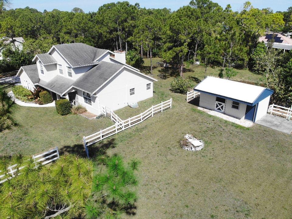 Private home, over an acre lot on a dead end road, NO HOA. Prime location that's quiet but close to the city and freeway. High ceilings in the living room, filled with natural light and a fireplace. Large first floor master bedroom plenty of closet space. Eat in kitchen. Garage has been converted to an amazing bonus space perfect for a pool table, play area, office or den, could be converted back to under air garage also. Second bedroom on the first floor also with a large walk in closet. 2 spacious bedrooms on the second floor that share a large full bath. This is one of the best floorplans in the Acreage. Screened in patio. This is perfect for horse owners with it's own barn including a horse stall and tack/feed room, could also be a great workshop! New 2 zone A/C.