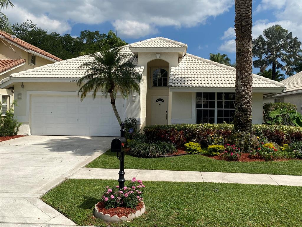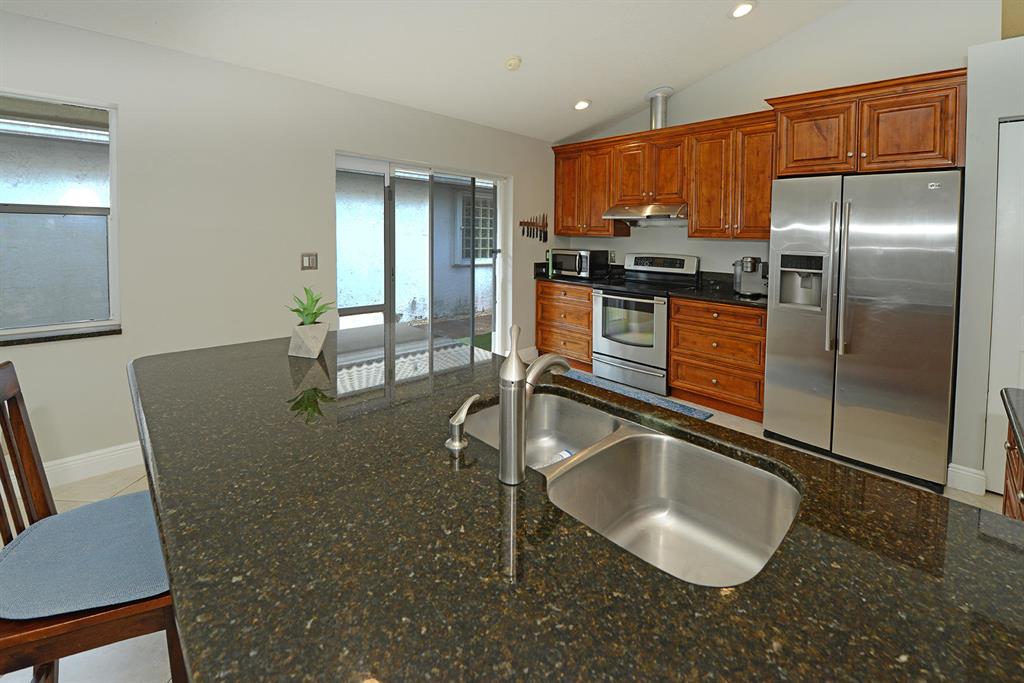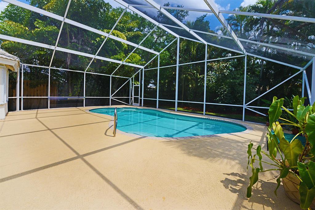 Single family home in gated community of Meadow Lakes Subdivision in Hillsboro Country Club Development. This spacious, open layout home w/ vaulted ceilings has 3 bedrooms (split), 2 baths, 2 car garage. Renov. kitchen w/ bar has wood cabinets, granite counters & stainless appliances, large master bedroom suite with plenty of closet space & oversized bath w/ separate shower, dual sinks & roman tub; indoor laundry room has washer/dryer and utility sink. Large screened patio with free form pool and lush tropical landscaping in backyard for privacy. Garage has attic space w/ pulldown stairs. Gated Community provides many amenities: Pool, Tennis Courts, Basketball Court, Playground, Lights, & Sidewalks. Location close to Sawgrass Expressway, Turnpike, shopping, & many great restaurants