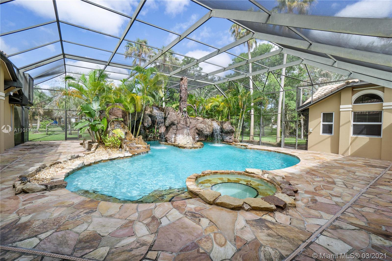 SPECTACULAR ESTATE HOME SITUATED ON 1+ ACRE IN THE PRESTIGIOUS WHISPERING WOODS. THIS TROPICAL GROTTO POOL HOME FEATURES OVER 7800 SQFT 1 STORY, 5+ BEDS 6+ BATHS, THEATER ROOM, SAUNA, 2 PLAYROOMS, OFFICE SPACE, CIRCULAR PAVER DRIVEWAY, VAULTED CEILINGS W/ RECESSED LIGHTS, FORMAL DINING/LIVING ROOM, FAMILY ROOM, EAT IN KITCHEN W/ GRANITE, WALL OVEN AND COOKTOP STOVE, CABANA BATHROOM, SPACIOUS MASTER SUITE WITH HIS/HER WALK IN CLOSET, DUAL SINKS AND WALK IN SHOWER.