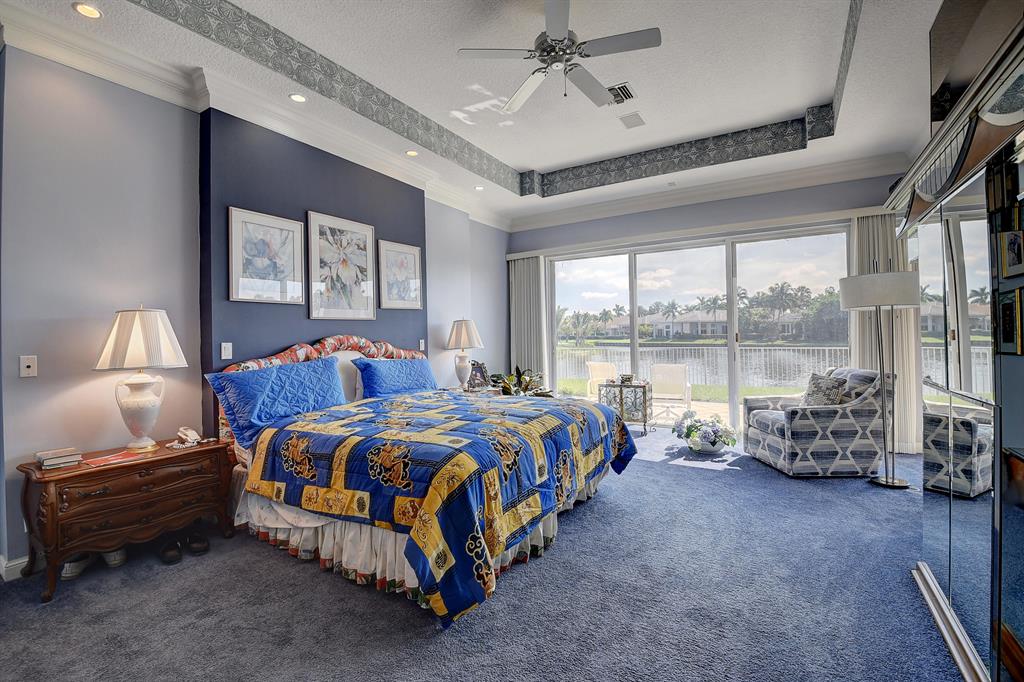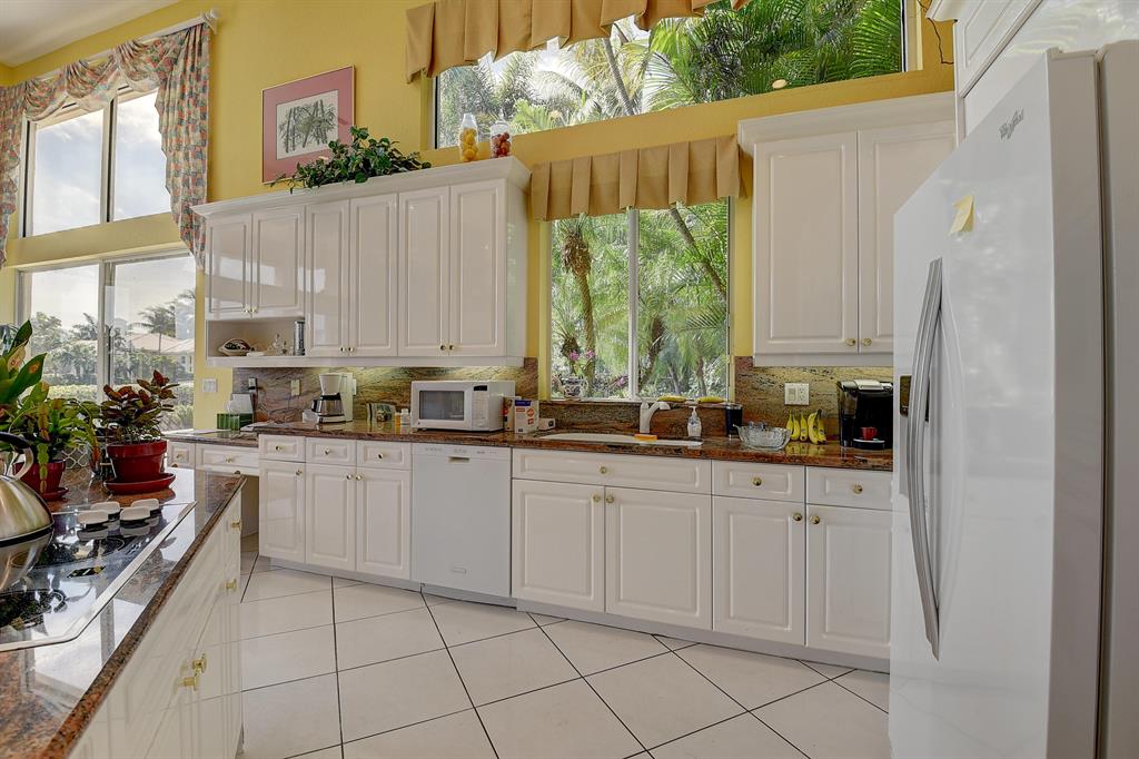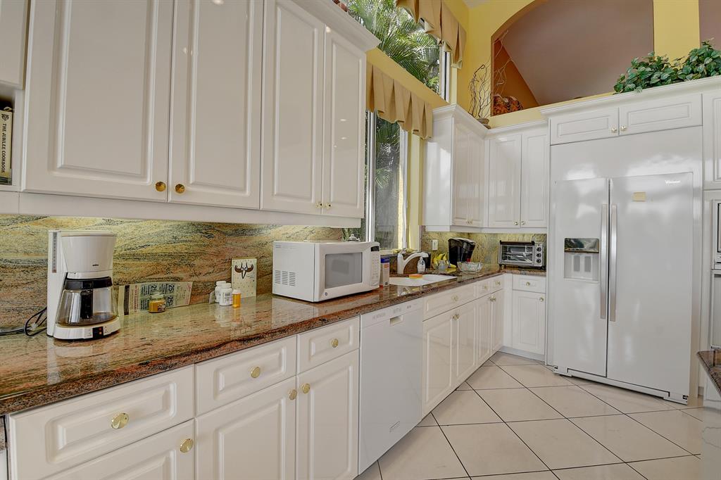 Wow! Beautiful lake views with the golf course beyond on a pie-shaped lot! Leaded glass double doors open into this charming & spacious one-story home of 4 bedrooms & 3 baths -- light & open with volume ceilings, neutral tile flooring, an open kitchen with white cabinetry & granite counters; Living Room wet bar; built-in Family Room entertainment center with surround sound; central vacuum system; a spacious Master Suite with 2 custom-configured closets & a marble master bathroom. The outdoor space features a freeform pool, covered & open areas, a grill area on a lovely oversized lot on the lake! A/C - 2017, 2016; Water heater - 2020; Roof about 10 years.