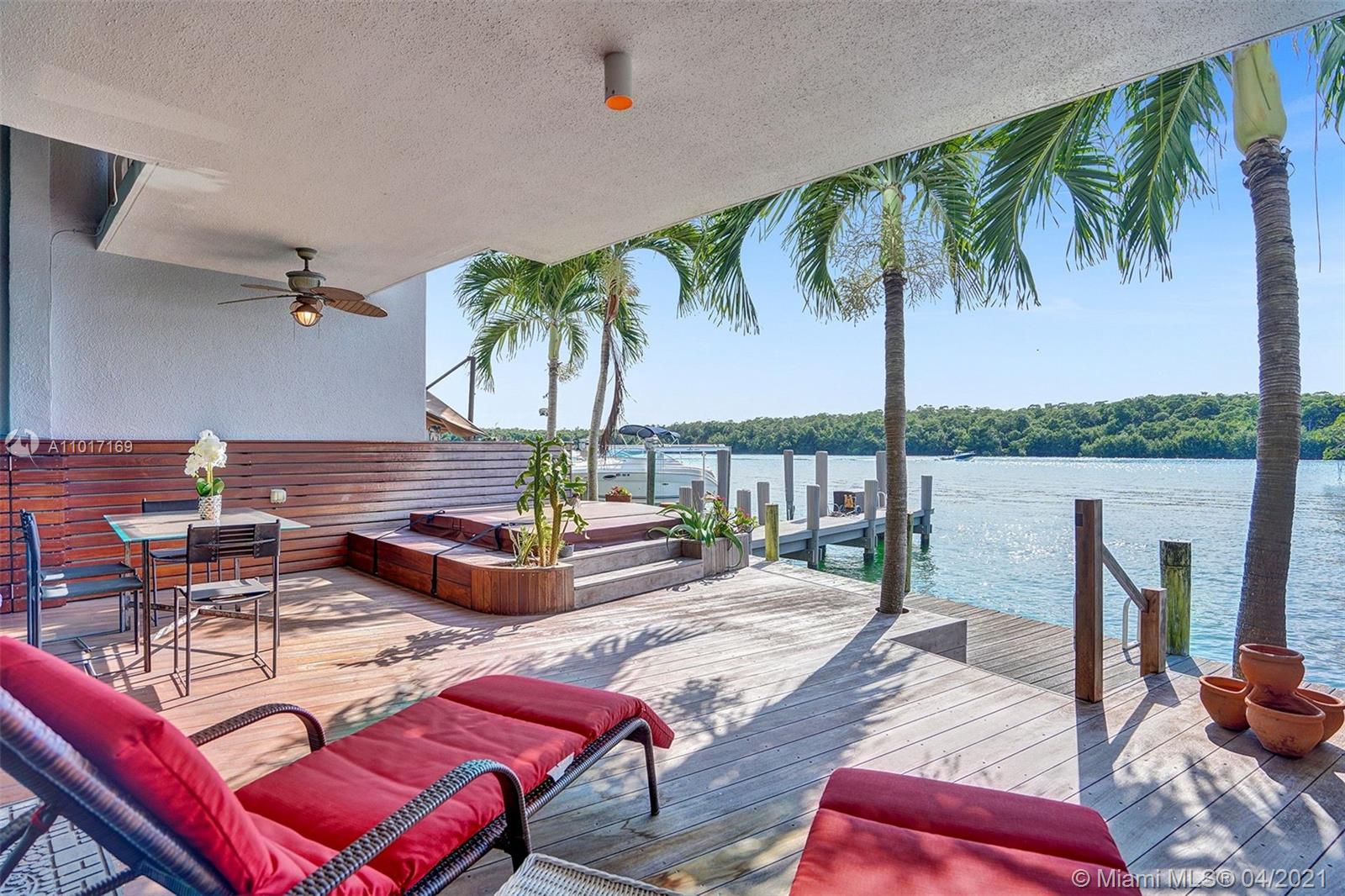 THE BEST VIEWS ON THE ISLAND with an oversized back patio and a Thermo spa jacuzzi. This gorgeous townhouse has a magnificent open gourmet kitchen, ceramic cherry floors, volume ceilings renovated bathrooms and more. The master bedroom is overlooking the intercostal and has an additional closet space. Enjoy water views & romantic sunsets on this private Island of Sunny Isles with 24 hours guarded security. The island offers a swimming pool, tennis courts, gym, dog park & kids play area. For those who like to fish, the fishing is right off the dock as well! The beach is only 5 min walk. Minutes to the best attractions in Miami.