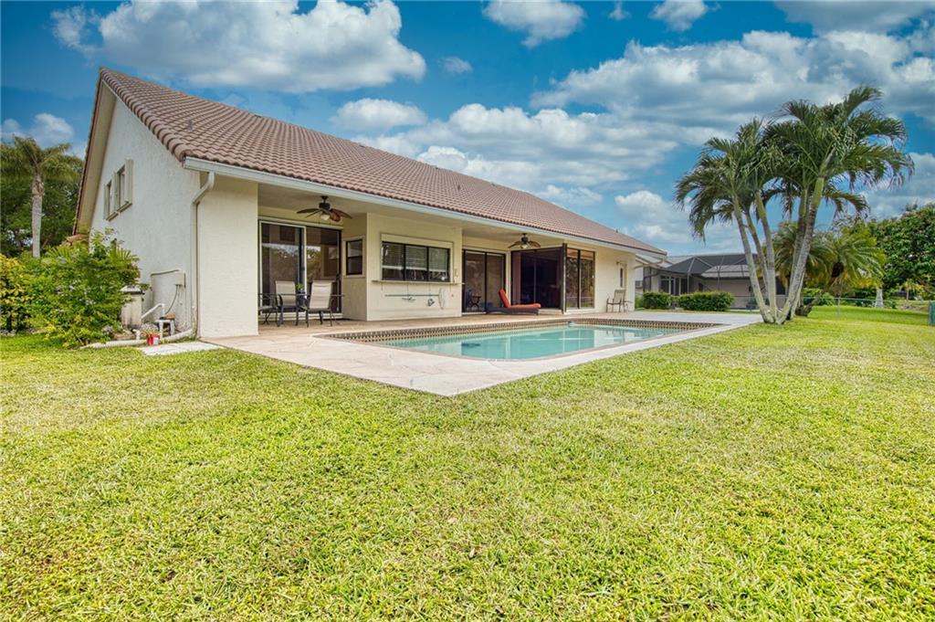 Temporarily off market ----- MOVE IN READY - LARGE AND SPACIOUS WATERFRONT HOME WITH LARGE FENCED YARD FOR CHILDREN & PETS, NEWER KITCHEN WITH WOOD CABINETS AND GRANITE, SS APPLIANCES, NEUTRAL TILE & LAMINATE FLOORING. OPEN FAMILY ROOM, VAULTED HIGH CEILING, FORMAL DINING AND LIVING ROOM, SPLIT BEDROOM PLAN, MASTER WITH DOUBLE DOORS , HIS AND HER SEPERATE BATHROOM AREAS AND TWO WALK IN CLOSETS, HURRICANE WINDOWS & SHUTTERS, 2 CARS IN GARAGE WITH 7 MORE CARS IN CIRCULAR DRIVEWAY, POOL AREA WITH LARGE POOL DECK AND OVERHANG, OUTSIDE SINK AND CABINETS. BEAUTIFUL WELL KEEP BRIGHT HOME. NO POPCORN CEILINGS IN THIS HOME, CROWN MOLDING AND MUCH MORE - SPRINKLERS WATER SUPPLY FROM CREEK -SHORT WALK TO ELEMENTARY SCHOOL. FURNITURE AVAILABLE!