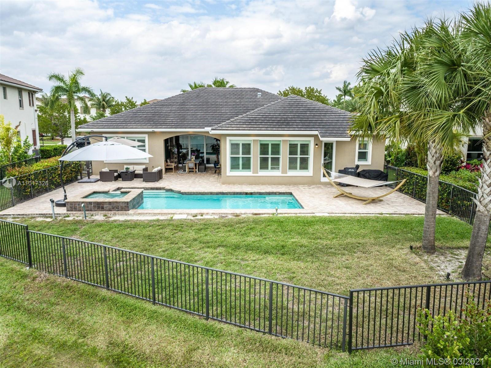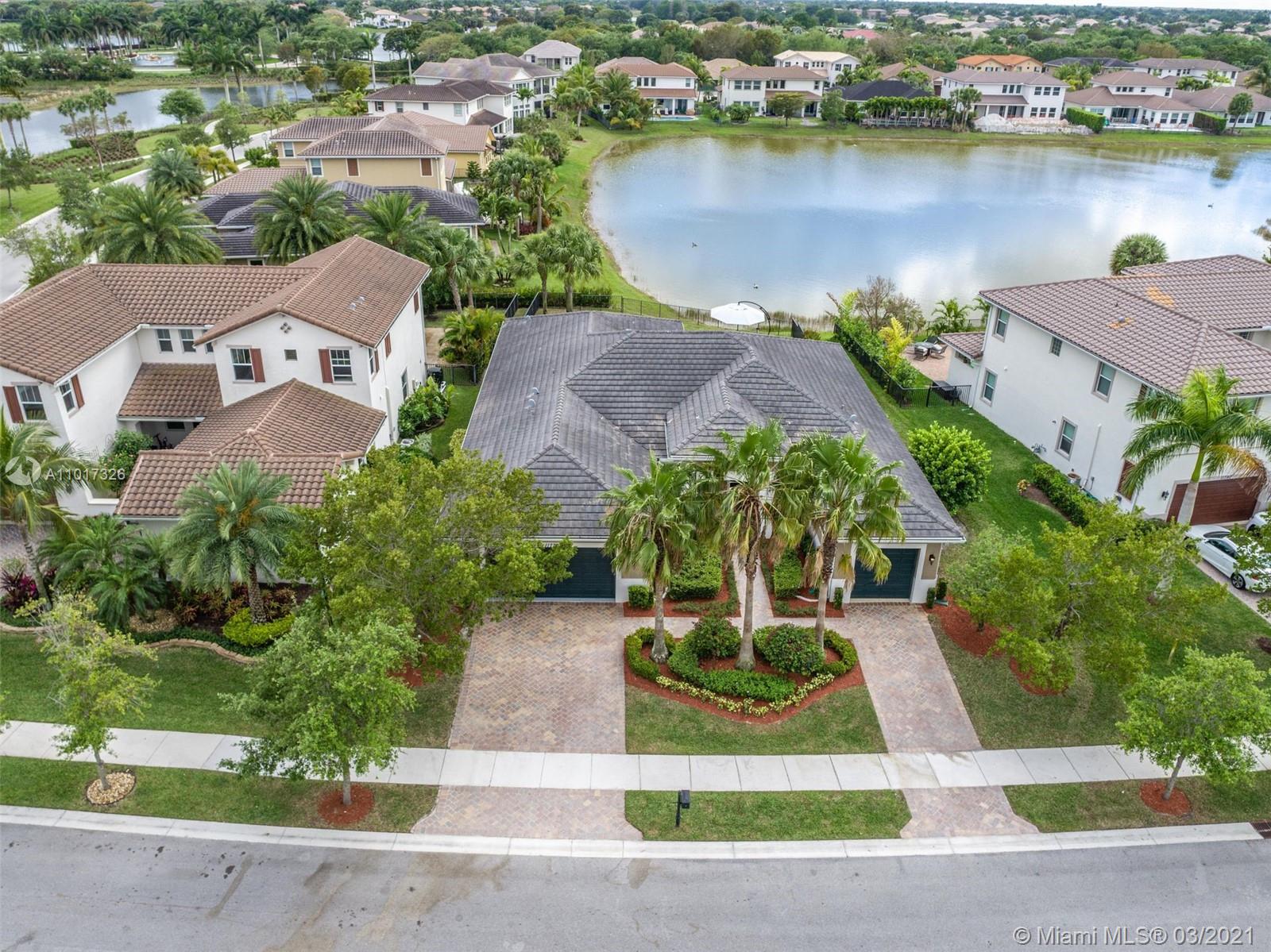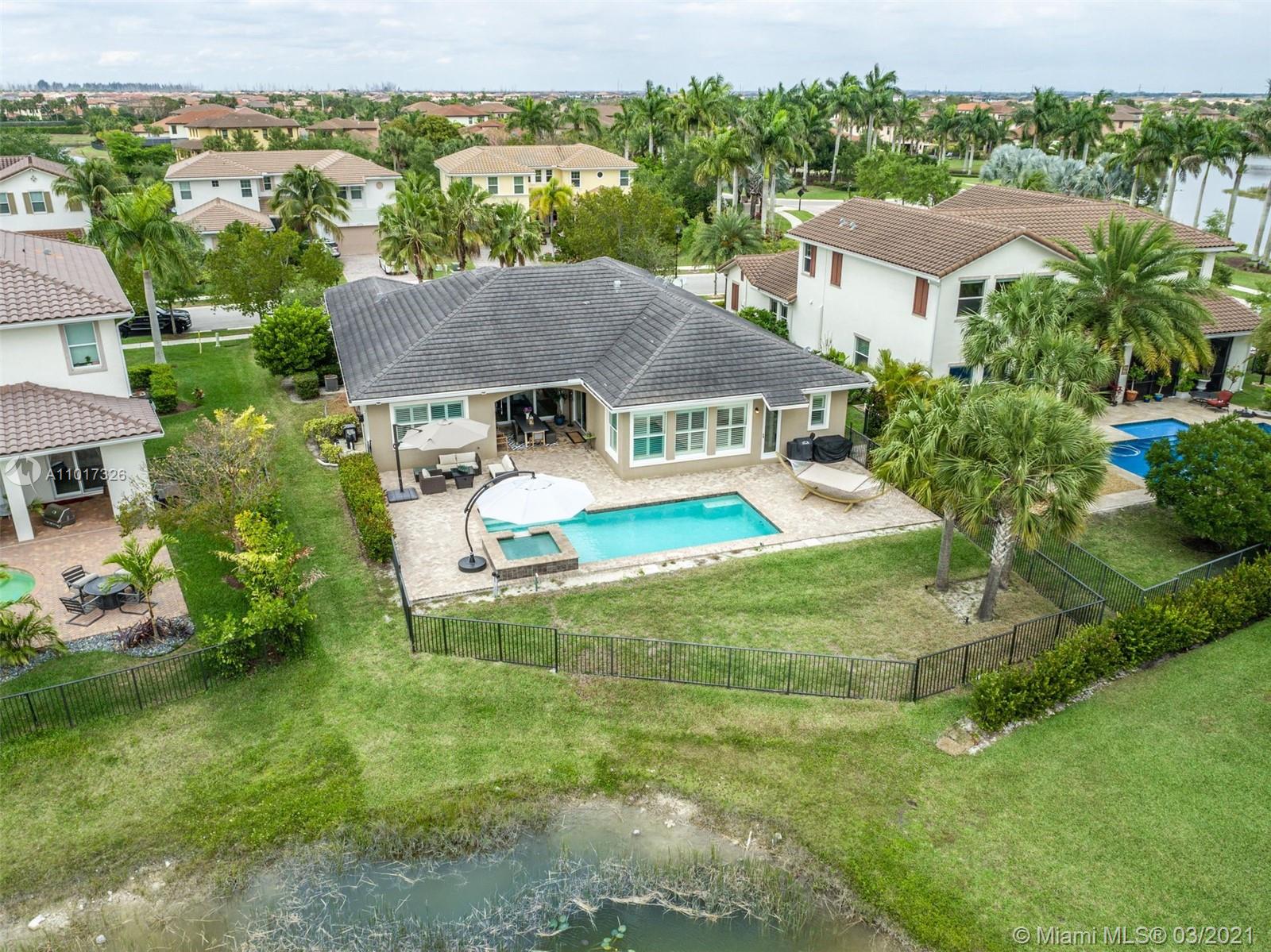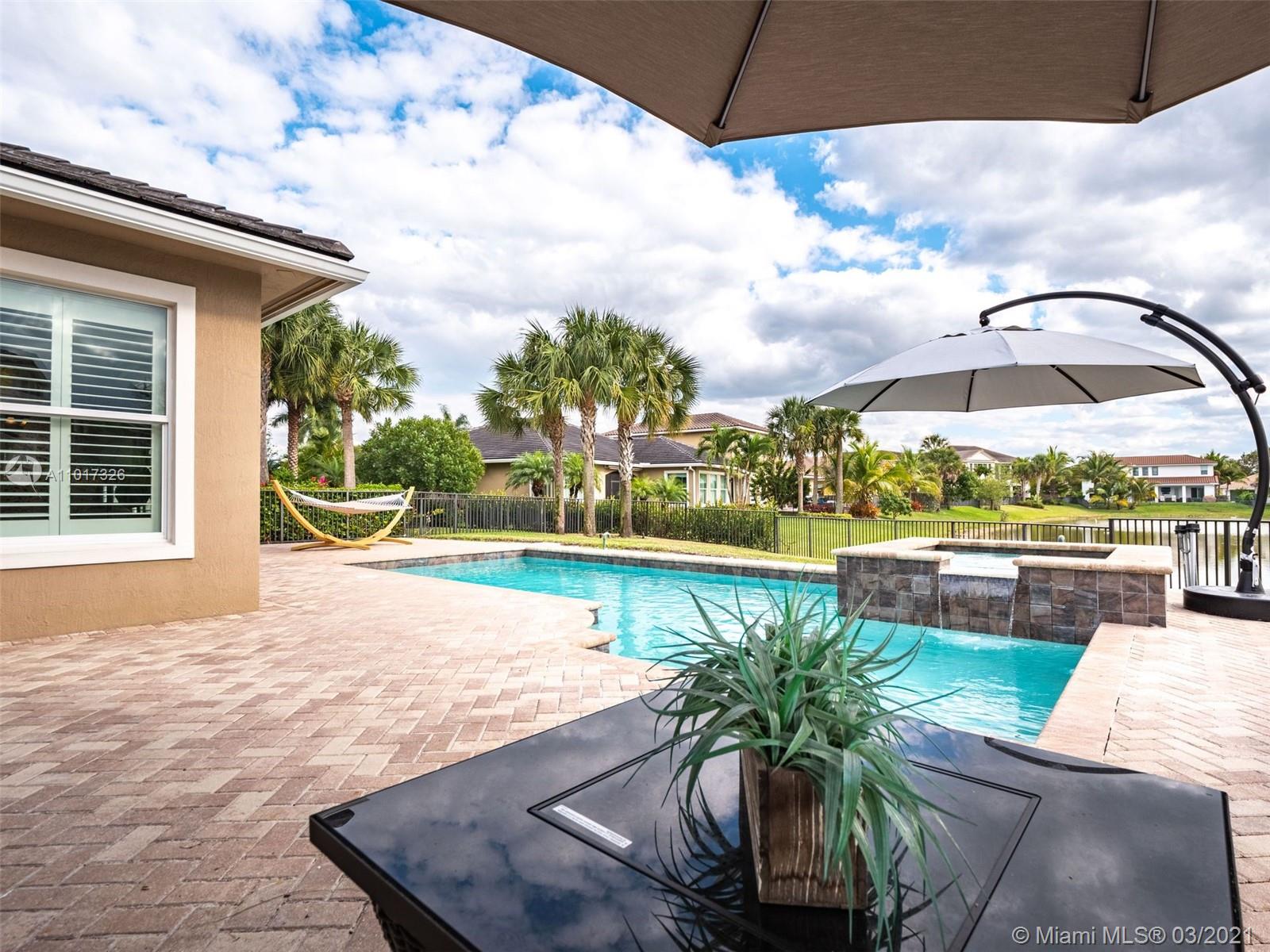 Turnkey 4 Bedrooms, 3 Bathrooms, 3 Car Garage Cypress Model. The Open Floor Plan Has High Ceilings & Plenty of Natural Light Throughout. Spacious Master Bedroom w/Walk-in Closet. This Home Features Tray Ceilings In Multiple Rooms, Wooden Floors In Bedrooms, Crown Molding, Plantation Shutters Throughout, Impact Windows & Doors, Beautiful Kitchen w/Natural Gas Cooktop, S/S Appliances, New Dishwasher, Granite Counters, Custom Epoxy Floor In Garage. Enjoy Outdoor Living with A New Fence, Covered Lanai, Private Backyard, Overlooking Waterfront Lot, Stunning Pool w/Spa & Waterfall, New Pool Heater. Perfect Area For Entertainment. Enjoy Living In Prestigious, Guard Gated Heron Bay w/2 Clubhouses, Resort Style Amenities, 14 tennis courts, Fitness Center & Great Schools! Low HOA $220 monthly.