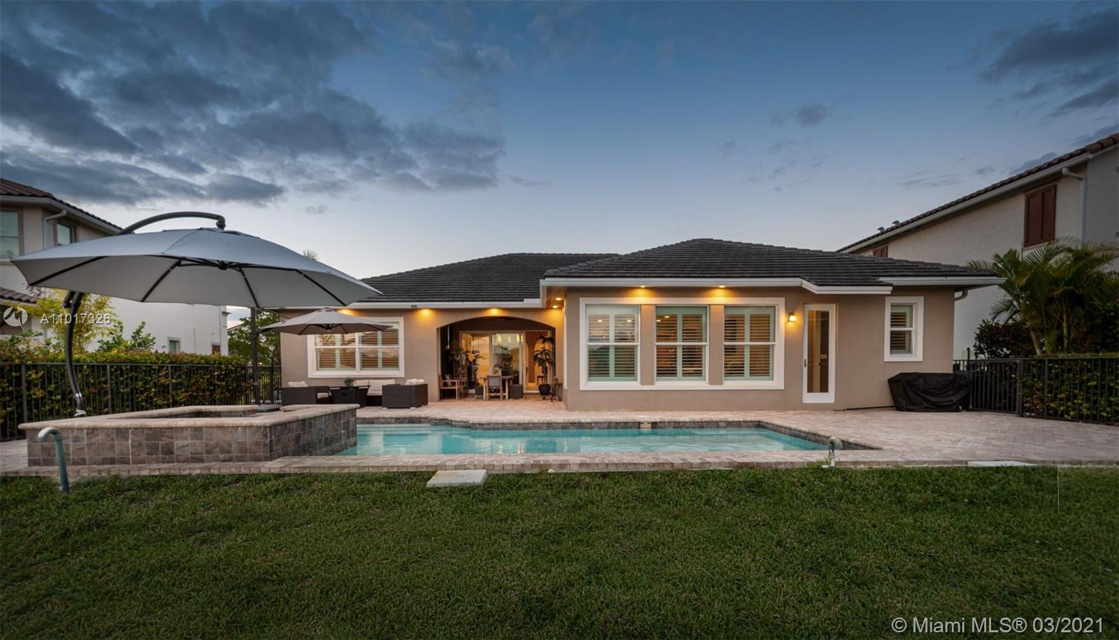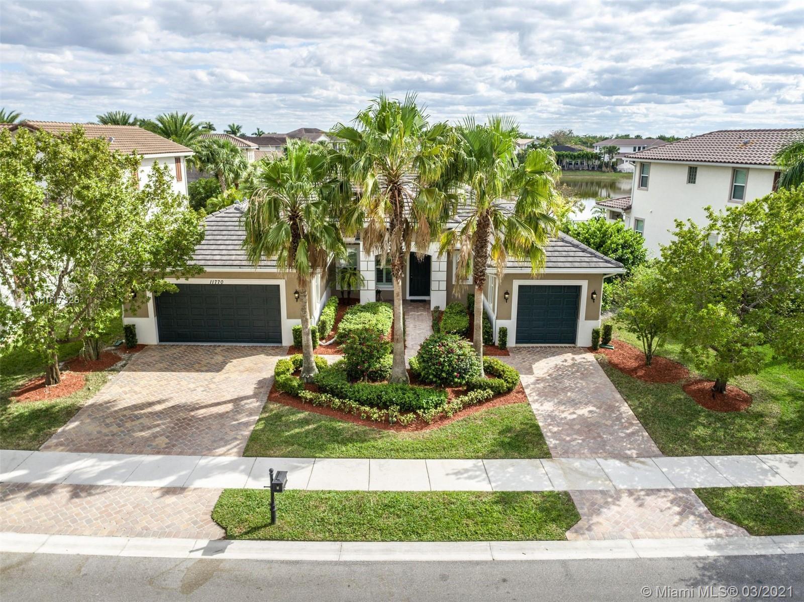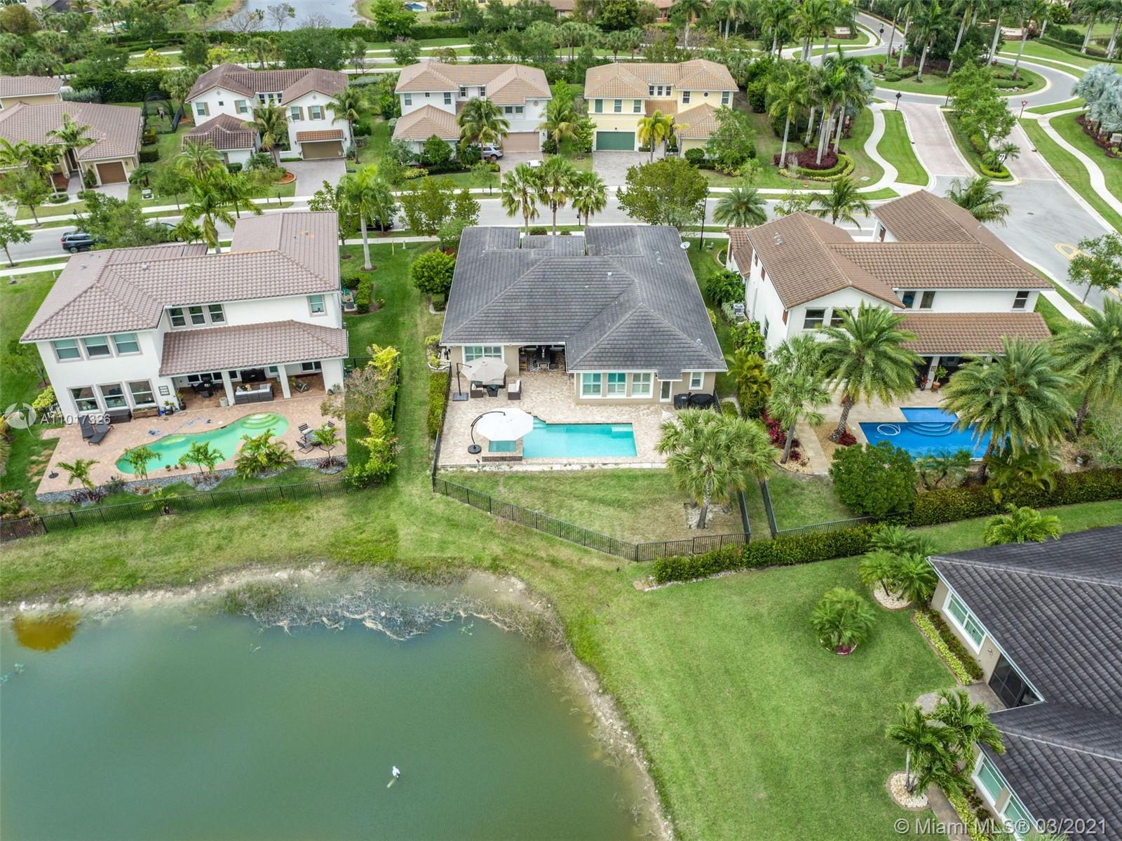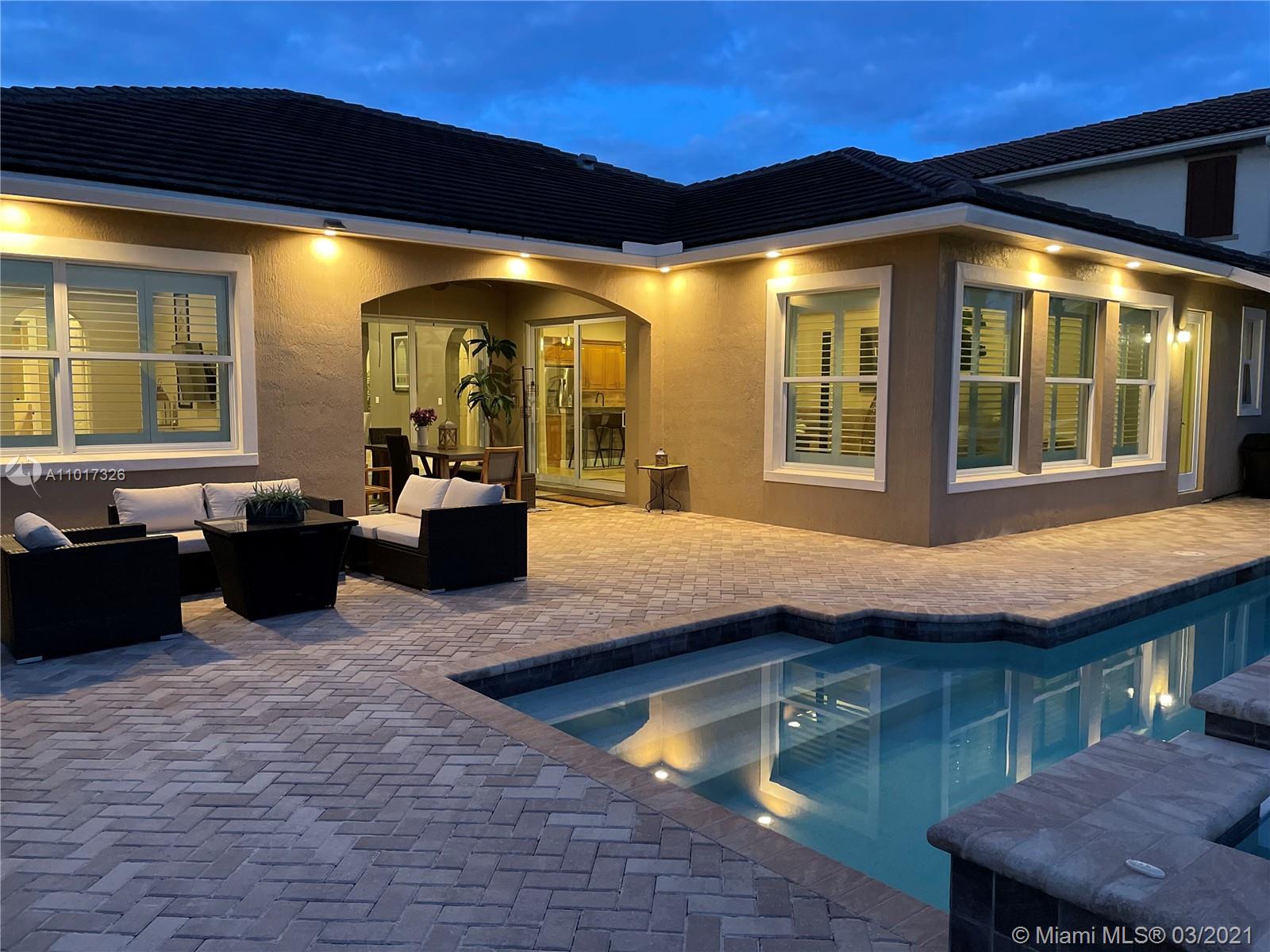 Turnkey 4 Bedrooms, 3 Bathrooms, 3 Car Garage Cypress Model. The Open Floor Plan Has High Ceilings & Plenty of Natural Light Throughout. Spacious Master Bedroom w/Walk-in Closet. This Home Features Tray Ceilings In Multiple Rooms, Wooden Floors In Bedrooms, Crown Molding, Plantation Shutters Throughout, Impact Windows & Doors, Beautiful Kitchen w/Natural Gas Cooktop, S/S Appliances, New Dishwasher, Granite Counters, Custom Epoxy Floor In Garage. Enjoy Outdoor Living with A New Fence, Covered Lanai, Private Backyard, Overlooking Waterfront Lot, Stunning Pool w/Spa & Waterfall, New Pool Heater. Perfect Area For Entertainment. Enjoy Living In Prestigious, Guard Gated Heron Bay w/2 Clubhouses, Resort Style Amenities, 14 tennis courts, Fitness Center & Great Schools! Low HOA $220 monthly.