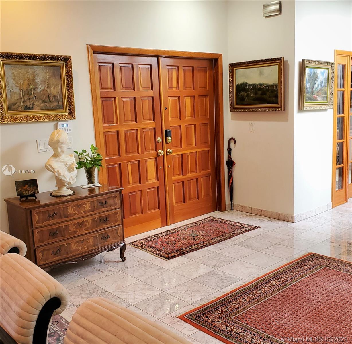 This is a one of a kind home where no expense has been spared and meticulous attention to detail, for a buyer with decerning taste. Airy 9 ft. ceilings, 130 Sq. Ft. enclosed Atrium with waterfall and greenery pool, Brick fireplace, Sub-Zero Fridge and Freezer, Custom built office with two work stations and filing cabinets and plenty of storage, Huricane windows and doors including garage door, 1900 Sq. Ft. screen enclosed Lania, custom built-in closets thoughout, Plantation shutters throughout, Custom kitchen with slide-out drawers all dressed in beautiful Azure/Black granite. Sub-Zero Side by Side Two Kitchen Aid dishwashers.Fantastic gardens with mango, avacado, and banana trees. Marble floors, solid wood doors, and many other features too numerous for this space.