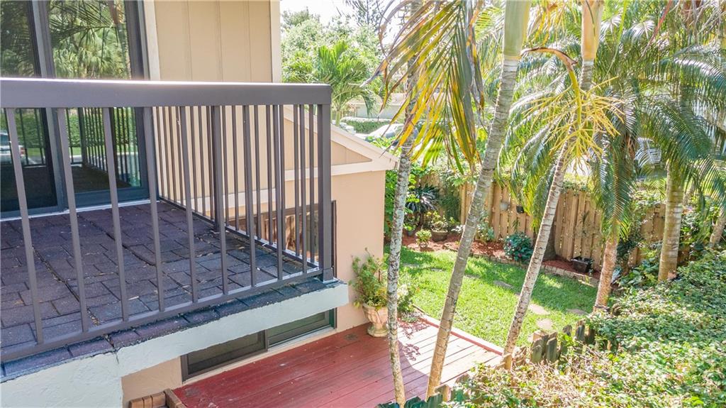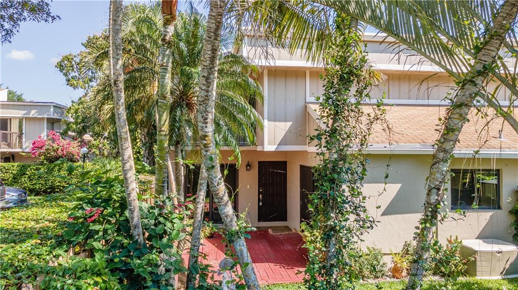 Beautiful 2/1.5 corner lot townhome is nestled in the heart of Plantation. Key home features include ceiling knockdown texture and crown moldings with an open floorplan layout. The kitchen features vaulted ceilings, stainless steel appliances, and custom cabinets with copious storage space. Perfect for entertaining with a private fenced-in garden also viewable from your balcony off the "Main" bedroom upstairs. Tile floors downstairs, laminate wood flooring on the staircase and second floors. The laundry room is located downstairs with a washer and dryer. Golf course, pool, and tennis court close by. Home is protected by Impact Windows and sliding doors. The Association is responsible for any roof repairs needed in the future.