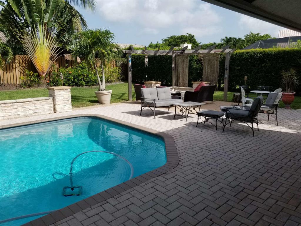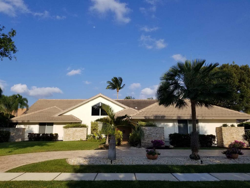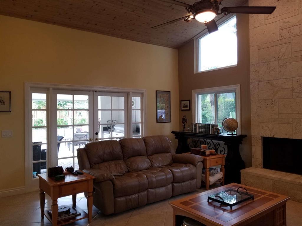 Perfect family home on huge landscaped lot in prestigious Woodfield Hunt Club. This four bedroom three bathroom home is on a quiet street and features impact windows, granite countertops, and stone fireplace. Spacious country kitchen features double oven, Bosch dishwasher, double-sink, 5-burner glass cooktop in large island, breakfast dining area and built-in refrigerator. Separate living, dining and family rooms. Conveniences include central vac, cabana bath, his/hers walk-in closets and vanities, roman tub and bonus room. Modern facade and palm trees welcome you to paradise as you drive up the large circular driveway to a 2.5 car garage. French doors throughout provide easy access to a beautiful, private, fenced backyard with a pool, hot tub, summer kitchen and entertaining space galore.