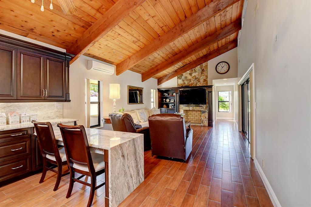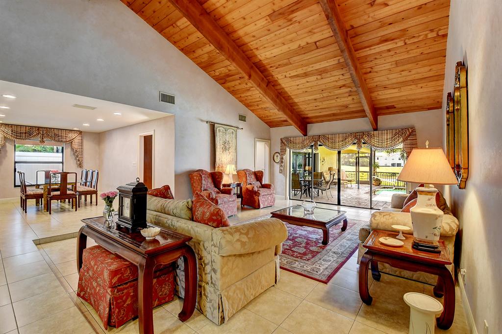 Fabulous lake & pool views everywhere! Renovated w/ all the finest finishes. Living room w/ Redwood vaulted ceiling overlooks the lake & pool, there's a formal dining room, as well as huge family room w/ fireplace. Gourmet kitchen has solid wood cabinetry & quartzite counters, upscale appliances & built-in home office area. Huge master suite w/ lake views & gorgeous bath, There are 2 more generous size bedrooms & updated baths. 3rd bath, serves as a cabana bath. Large family room can easily be divided to create a 4th bedroom. Pool & patio are screened, lots of grassy area tp play! There are impact windows & accordion shutters, security system, 1/2 house generator. too much more to mention. Wind Drift is ideally located, near everything & zoned for Bocas best schools.