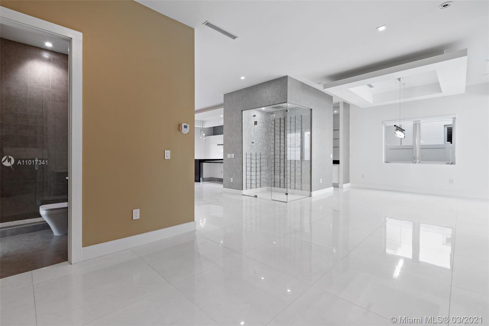 This new beautiful Doral home has everything you are looking for and much more. Model D home with third level rooftop. Three stories, open floor concept with 5 bedrooms and 6 bathrooms, pool, glass wine cellar, custom built closets, beautiful white marble flooring throughout the whole house, large open kitchen with custom cabinets and large island, and no neighbors behind. Rooftop on the third floor has a complete bathroom, outdoor kitchen with built in BBQ, Jacuzzi and artificial grass for your enjoyment. Over $200k in upgrades were put in this home. New Doral City place within walking distance of great restaurants, shops, and entertainment. A must see!!