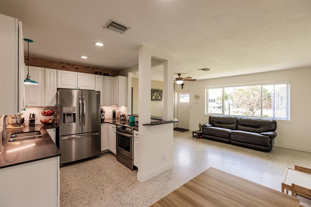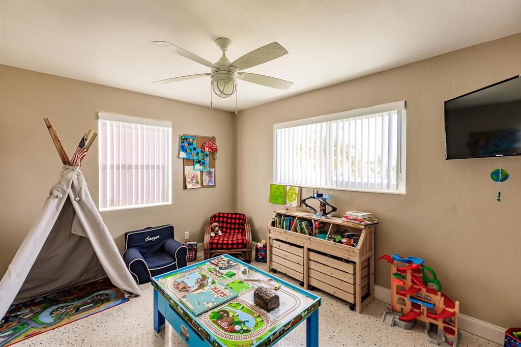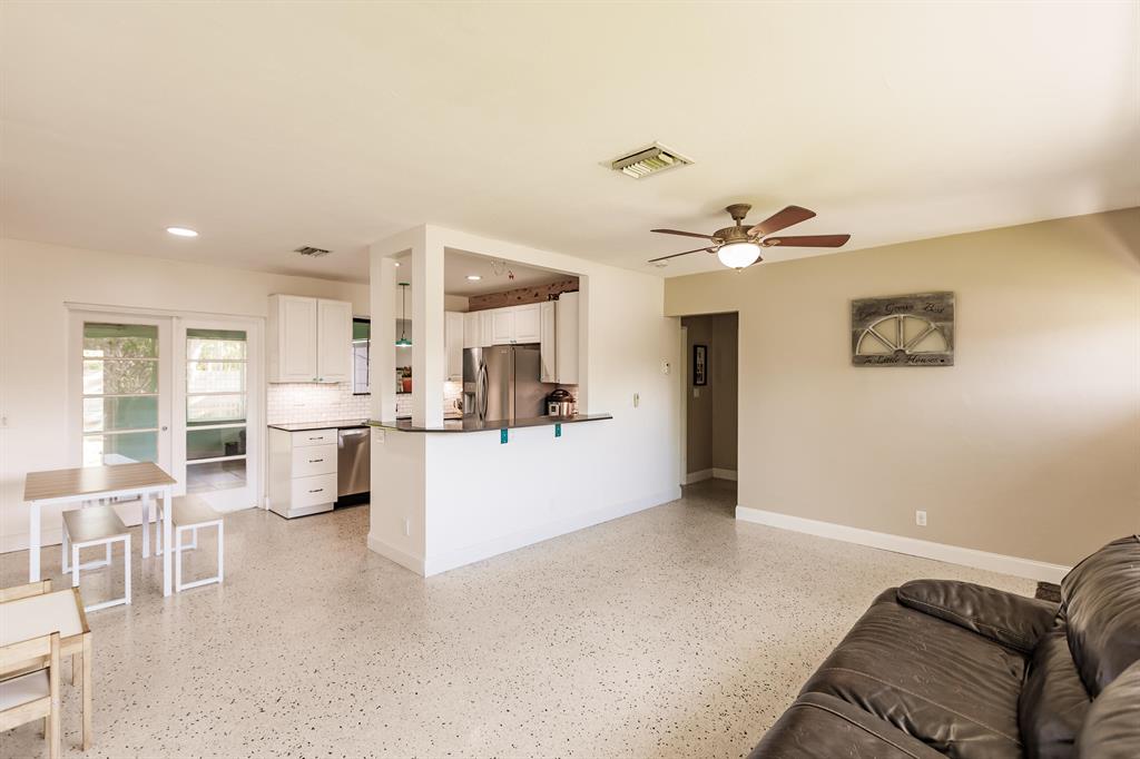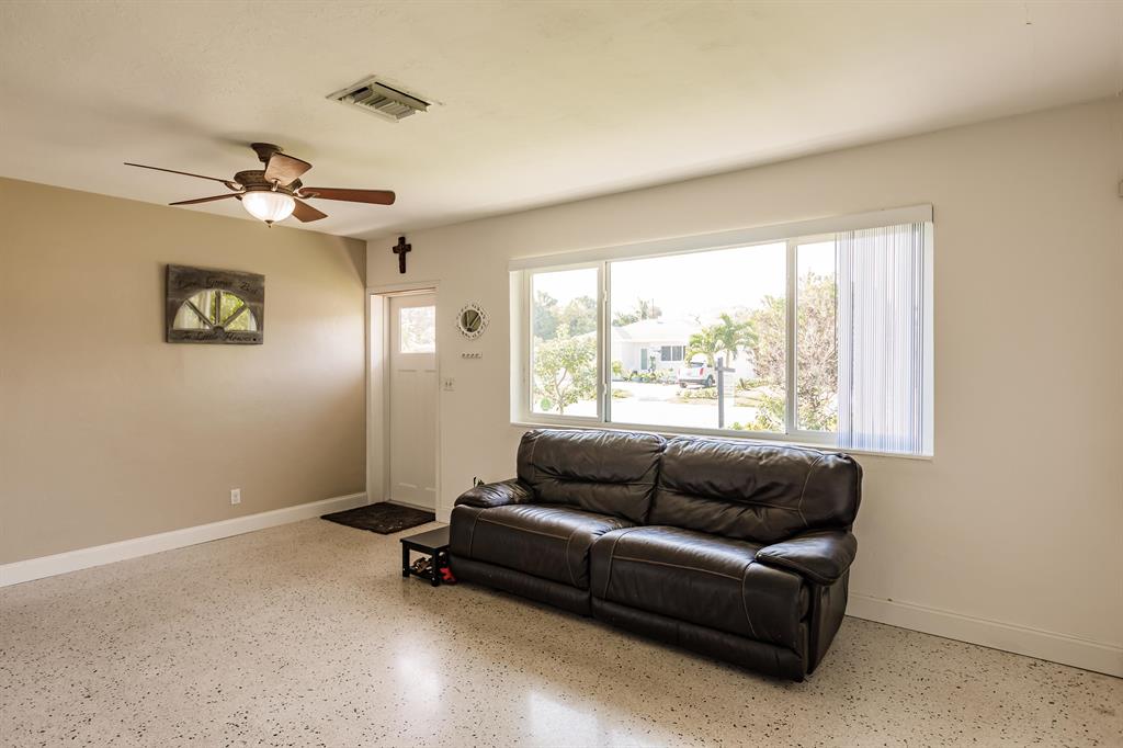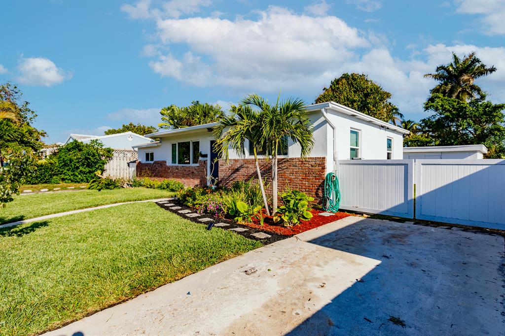 Very Nice 3 bedroom in sought after SoSo neighborhood. Only 3 Blocks to the intra-coastal. Bike to beaches! Very well maintained home features 3 bedrooms and 2 bathrooms PLUS a very large 420 sqft storage building that can be turned into cabana house, office, gym or left as a garage. Inside this beautiful home is recently updated bathroom and kitchen area. Floor is restored terrazzo in living areas. Home also has a nice bonus area that is great for additional family room. Full hurricane protection with hurricane impact windows! Big Beautiful yard! Room for a pool! Fully fenced! Park close by and walking distance to South Olive Elem school.
