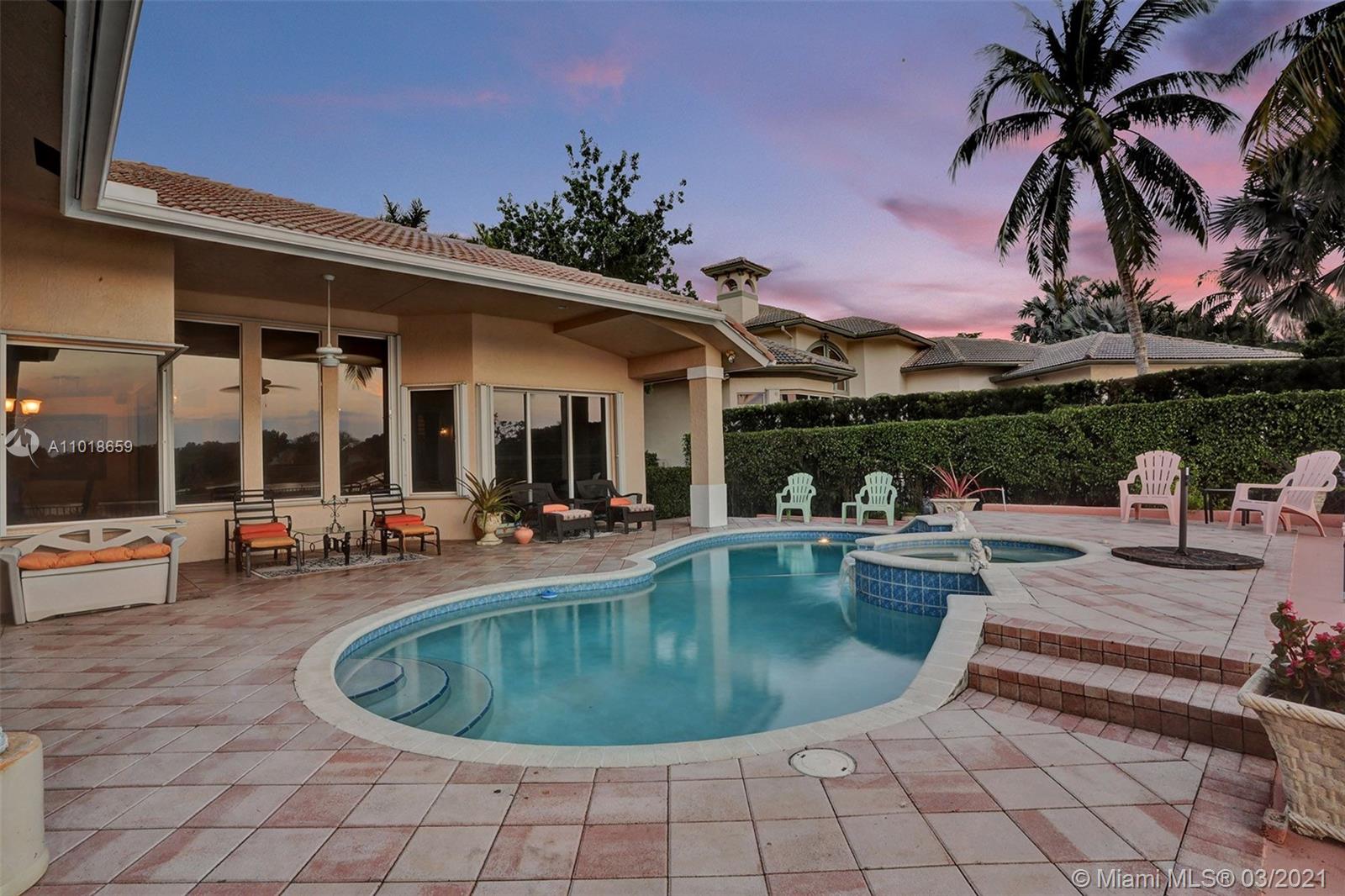 WOW! TREMENDOUS RARE OPPORTUNITY WITH INCREDIBLE LAKE AND GOLF COURSE VIEWS OF THE SUNSET FROM THIS ORIGINAL OWNER HOME IN DOUBLE GATED THE FALLS OF HERON BAY COMMUNITY! 5 BEDROOMS + SITTING AREA IN MASTER BEDROOM! NEAT, CLEAN, NICELY UPGRADED, AND READY TO GO! HEATED SPA/POOL! 3 NEWER A/C UNITS! HURRICANE IMPACT FRONT DOORS! FULL ACCORDION HURRICANE SHUTTERS! PLEASE SEE FACT SHEET!