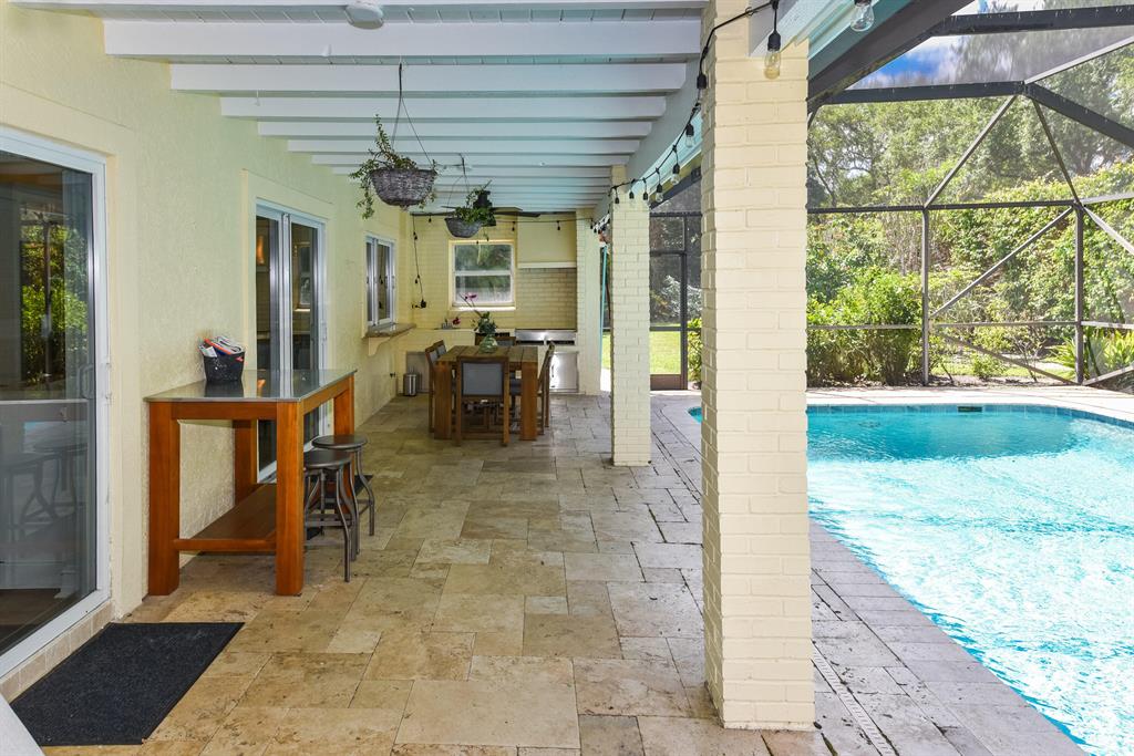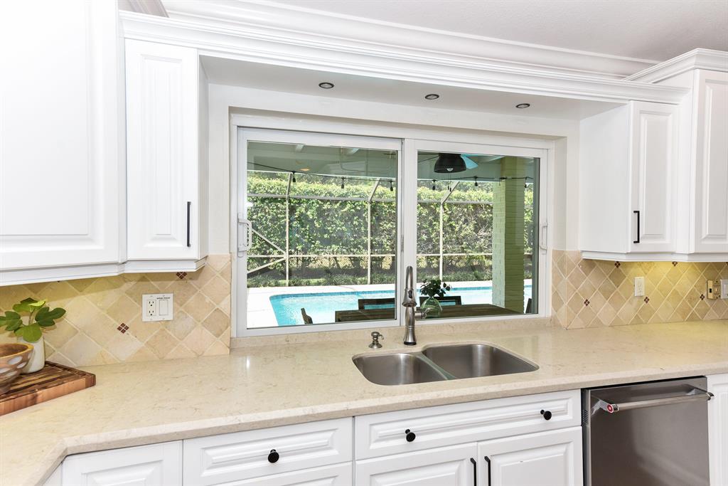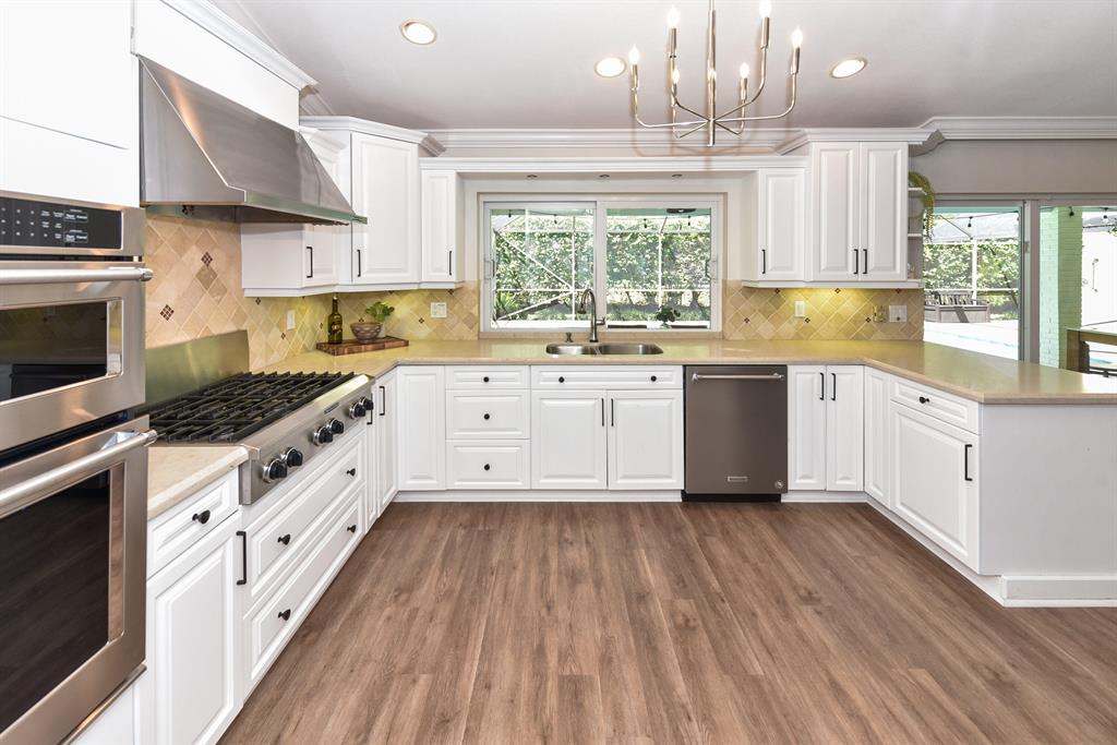 This beautifully updated 4 bedroom/2.1 bathroom home is situated on a lushly landscaped, quiet private lot with an oversized yard. The home features impact windows and doors, new vinyl and wood flooring, white wood cabinets with quartz countertops and stainless steel appliances. The kitchen is a chef's dream with a 6 burner gas range and top of the line appliances. Open and airy, this home is great for families and entertaining. The screened in pool and patio were redone to feature marble pavers and an oversized heated pool. This home has been immaculately maintained and is ready for the pickiest buyer. *Please note that the 4th bedroom has been opened up to be a study off the master but can easily be converted back to a bedroom.