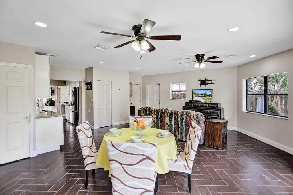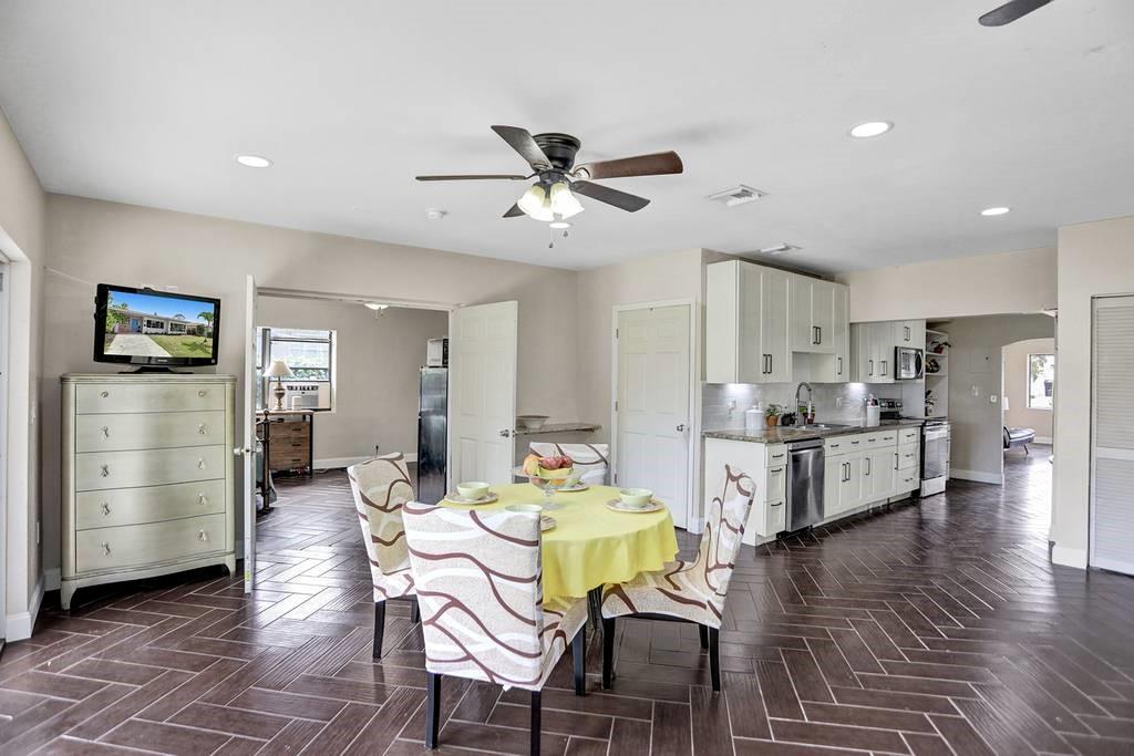 This 5 bedroom, 3 bath home with efficiency/in-law suite has a newly updated kitchen with granite and stainless steel appliances. New floor tiling throughout and a fresh coat of paint will allow you to move right in. The rear yard is spacious and ready for a new outdoor kitchen, pool, and patio as there is room for all 3! Exterior doors from the efficiency and the Master bedroom. New Hurricane rear patio doors.