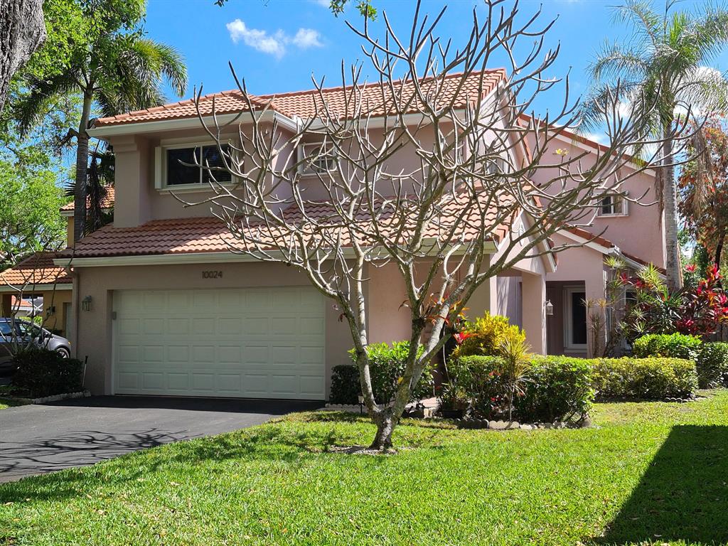 Stunning cul de sac, two story home in the gated community of Sunset Cove, Plantation, FL.3 bedroom/2.5 bath sits on oversized lot with a screened in pool patio and yard. First floor has a half bath, laundry area, dining room, family room, and spacious living room w vaulted ceilings. The remodeled kitchen has granite counters, pull out shelves, a new range, built in hot water dispenser, and eat in kitchen dining area. 3 bedrooms and 2 full baths are upstairs with a wide loft perfect for an office/gym area. The exterior is newly painted. New AC replaced 2018. Roof replaced Sept 2008. All the windows have accordion shutters. W/D and outdoor jacuzzi included. The HOA provides landscaping, tree trimming, built in sprinklers with maintenance, a heated community pool, and guard gate.