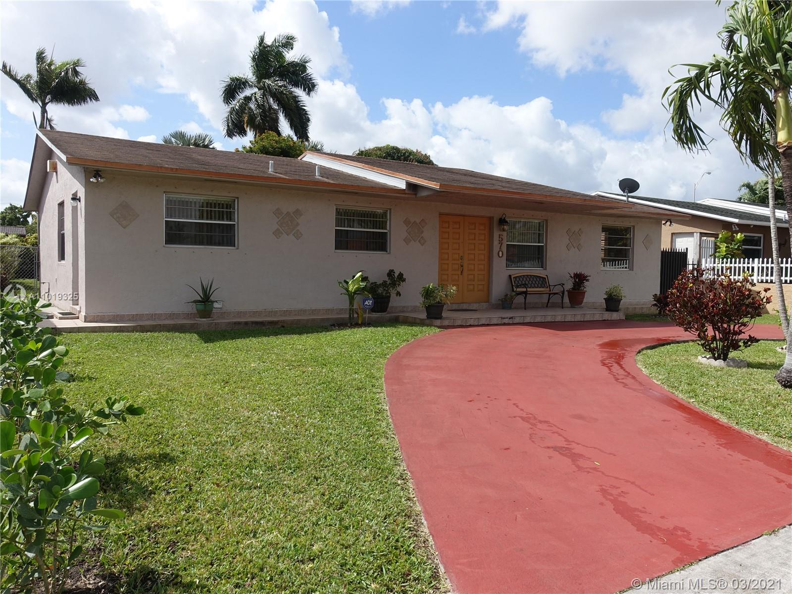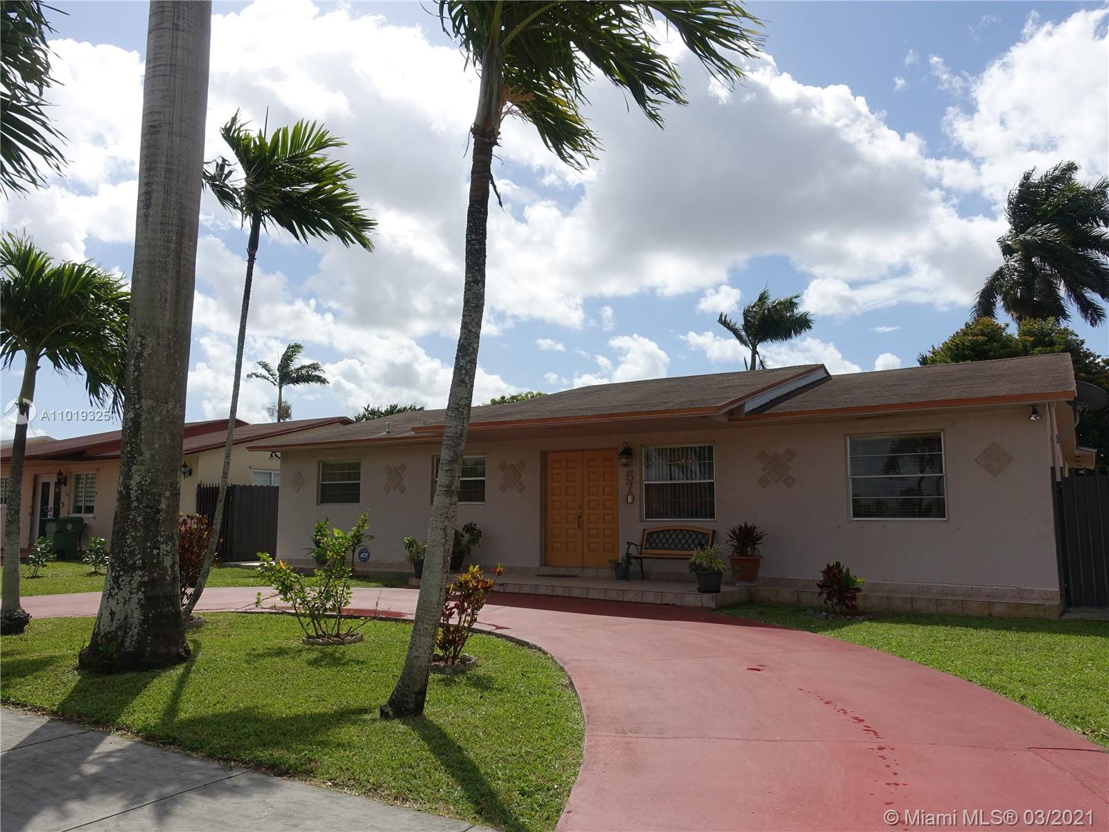 Own this wonderfully maintained, one-story single-family home featuring 3 bedrooms & 2 baths in West Hialeah. This house has a fantastic layout with a living room, dining room, family room, laundry room with storage space off the kitchen, and a covered terrace. Plus a bonus bedroom that was added with permits, right off the kitchen, and a covered terrace. Plus a bonus bedroom that was added with permits, right off the covered terrace. This bonus room was used as a man's cave by the previous owner and can be used as a 4th bedroom. The home is tiled throughout, has a large storage shed in the ample backyard, an outside utility room with a generator, and a circular driveway. Centrally located near Miami Lakes, shopping centers, restaurants, schools & more.