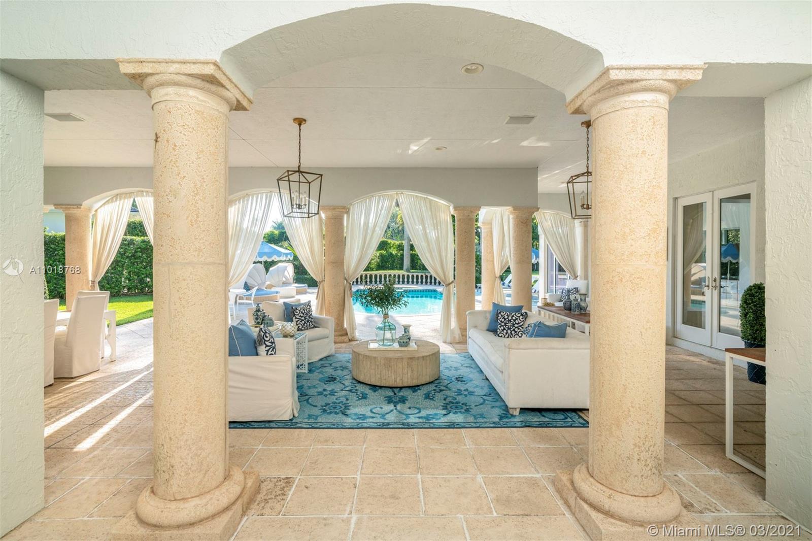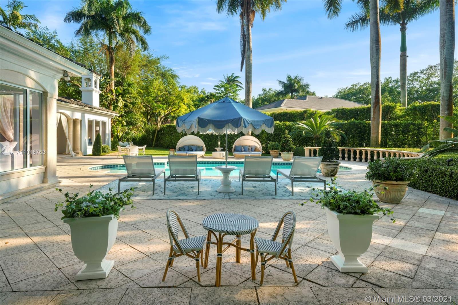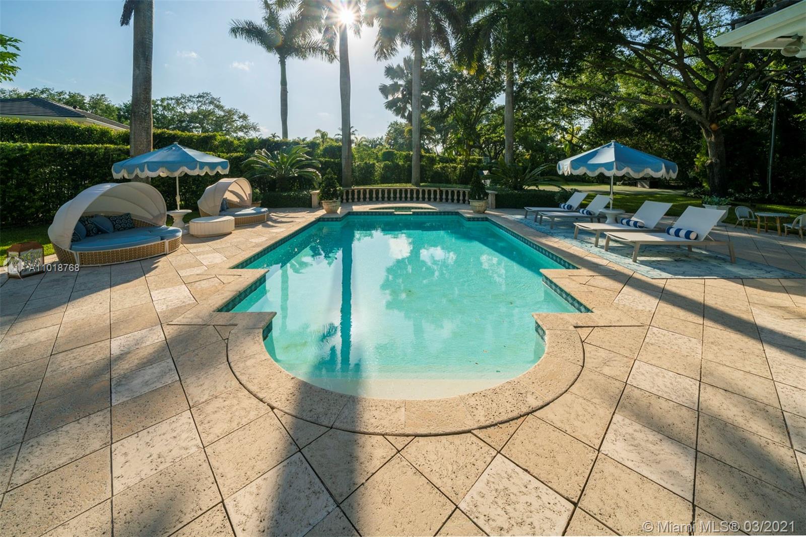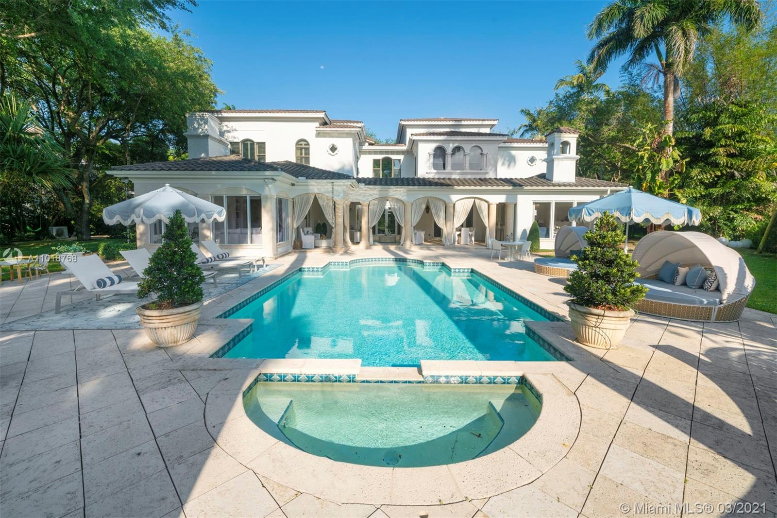 Impeccably designed residence with coffered ceilings, crown moldings, light-filled living spaces, elegant finishes and resort-like gardens. A gated entrance surrounded by a canopy of Oak and Podocarpus trees welcomes you to this two-story 7,995 Sq. Ft. home with 7 bedrooms, 4 full and 2 half baths. The entrance foyer leads to the formal living room, with views of the pool and manicured garden. Also on the main level is a formal dining room, stylish bar and professionally equipped kitchen with breakfast area. The sunny family room opens to a beautiful and sophisticated outdoor terrace, ideal for entertaining. The main suite has 2 custom-designed walk-in closets and a luxurious bathroom. This truly remarkable home also comes with an office, gym, staff room and half-basketball court.