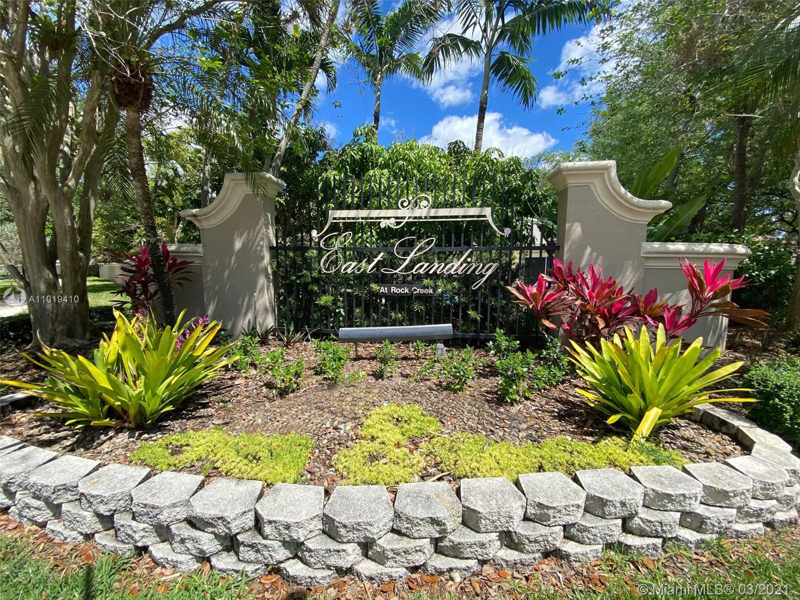 Rarely available beautiful two story pool home! Tucked away on a corner lot in the private + gated community of Rock Creek East Landing. Prepare to feel like you are stepping in to a tropical oasis with lush landscaping, pool views at each and every corner and great backyard tiki area! This spacious 4 bedroom 3.5 bedroom home also has a den area that can make for a great bonus room, office or 5th bedroom! Oversized master suite is located on the first floor and has wonderful pool views as well as sliding door access to the backyard! Large kitchen with new stainless steel appliances, wall oven and island stove top. High hat lighting! Wonderful backyard with lots of greenery for privacy that is great for entertaining! Recently resurfaced pool! Updated AC units! New tile flooring throughout!
