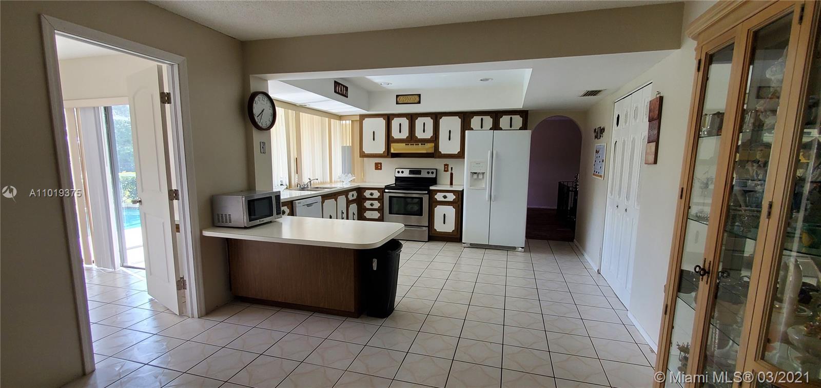 HUGE OPPURTUNITY to live in Cooper City at this price! 4 beds & 2 baths on an oversized pool lot overlooking the golf course is just the start. From the moment you walk through the Spanish style arch, the coziness starts to ooze. Step inside & the wood looking tile floors accent the sunk in living room looks like you've entered a European Castle. The owners suite boasts a huge walk in closet, separate vanity/make up station & cabana bath. Sliding glass doors throughout & picture windows from the kitchen open up the view to the pool & golf course from every location inside. Large covered back patio & screens encompass the entire pool area. Fantastic schools, minutes from shopping, golf courses & major highways. Those who move into Cooper City rarely move out. Easy to show, this wont last!!!