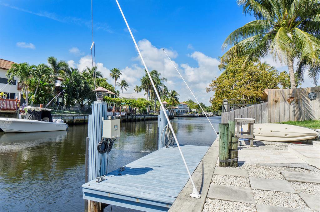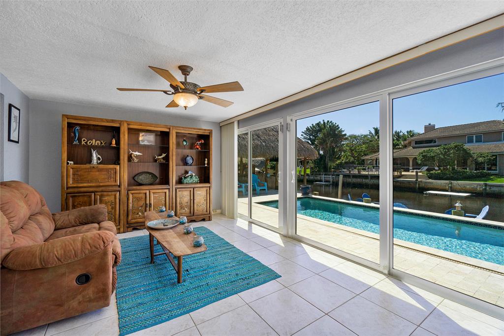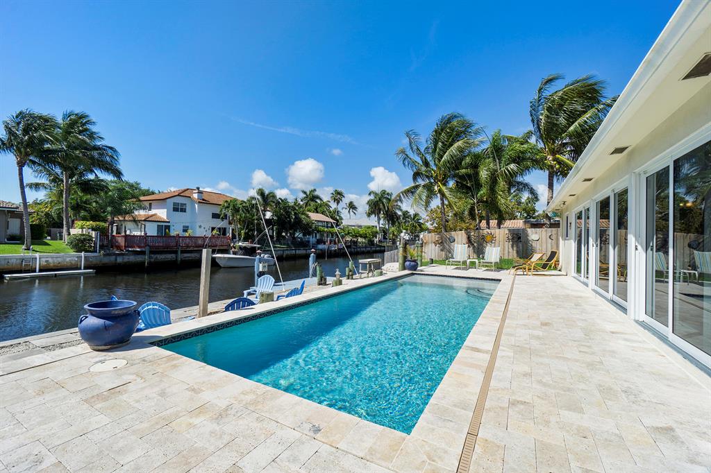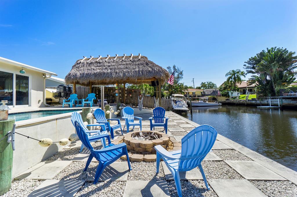 Tropical Oasis/Ocean access EAST BOCA WATERFRONT/POOL. Large Tiki Hut 80' Sea wall with 10' dock. side of the house out fitted for a Trailer with boat or RV with Power set up available. Out door fire pit over looks the water on this Ocean access 3/2 plus DEN/OFFICE*light bright and sunny* open floor plan great for entertaining Impact windows entire house Liv/Din/Kit/guest bedroom and Family room overlook beautiful large Pool/waterview tile throughout carpet in bedrooms upgraded bathrooms w/custom cabinets and granite countertops split layout full size utility room circular driveway seawall and Dock w/water and electric ocean acess w/fixed bridges private wide cul de sac street premier southern exposure lot 80' x 100'.