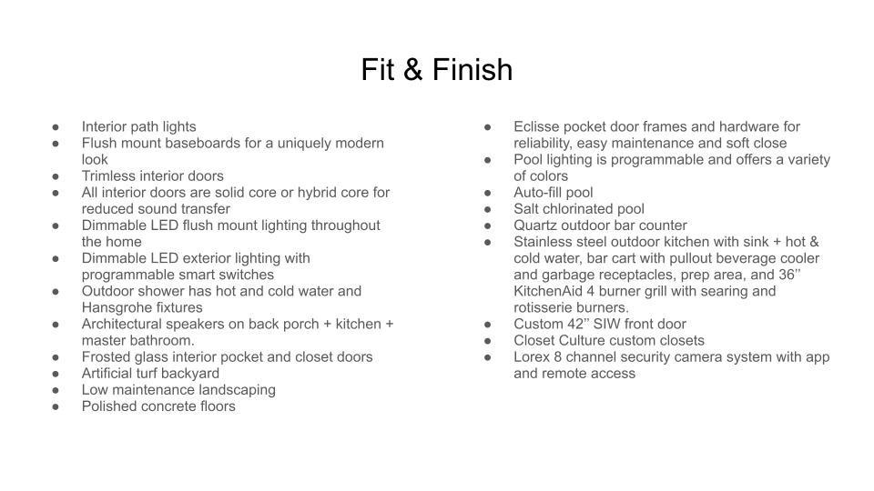 New construction in Shady Banks, one of the most family-friendly neighborhoods in east FTL! Built in 2020 this 3/2.5 custom home draws design elements from mid-century modernism including ample windows and a very functional floorplan. 10’ interior ceiling height. Chefs kitchen with comfort height counters and quartz countertops, oversized sink, 36” professional 6 burner range, 5 stage water filtration, wine, and beverage refrigerators. 8’ doors throughout. Custom garage door and overhead storage. Saltwater pool with sun pad and bench seating area. Metal roof. Polished concrete floors. Low maintenance landscaping. Custom outdoor kitchen with built-in KitchenAid grill and hot and cold water sink. Hot/cold outdoor shower with rain head. High-efficiency tankless gas water heater.