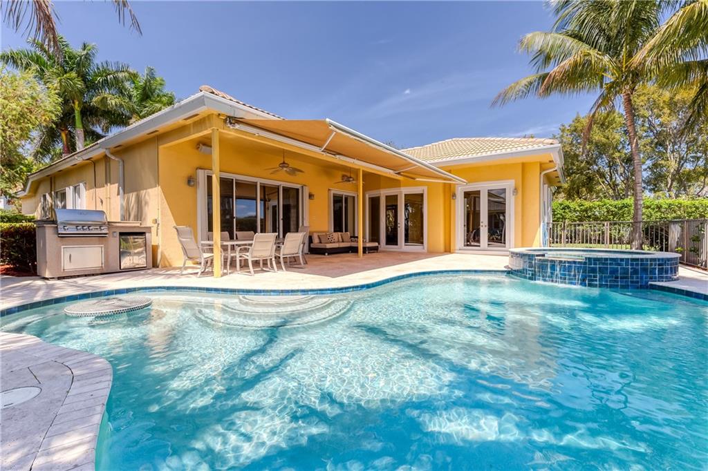 Magnificent Lake Front Home with a Pool in the Exclusive Gated Community of Boca Falls in Boca Raton! This is a large 5 bedroom Home 3 Full bathrooms & 1 half bath one story home. Home is Move-In Ready! This Expansive Home Features many upgrades including- Over 3,200 Square Feet Under Air, remodel kitchen with built in wine cooler, Travertine floors, retractable awning in backyard, out-door kitchen, in-pool table, Hurricane According Shutters and Impact Doors, Perfect for Entertainment, Great Home! HOA includes cable and Internet, a clubhouse, gym, pool, tennis courts, basketball courts, and a playground.