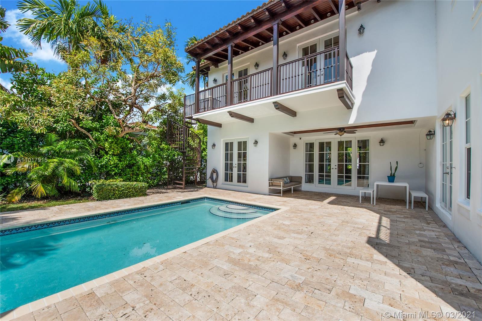 Presenting to market a meticulously crafted 2005-built residence evoking a casual West Indies architectural design. Premier millwork, solid hardwood floors, custom cabinetry, coffered ceilings, built-ins, wainscotting, and natural stone countertops all unite harmoniously bringing you a warm and airy design. The loads and loads of windows (impact/recently installed) allow for natural light while the bevy of balconies/terraces add more usable space to the home. Its floor plan consists of 1 bedroom and bath downstairs + 4 bedrooms upstairs which include the main suite. It is sunshine city just about all day poolside but if shade is your preference, the covered terrace offers space to unwind as well. Indeed a ‘feel-good’ home and one expected to sell very quickly.