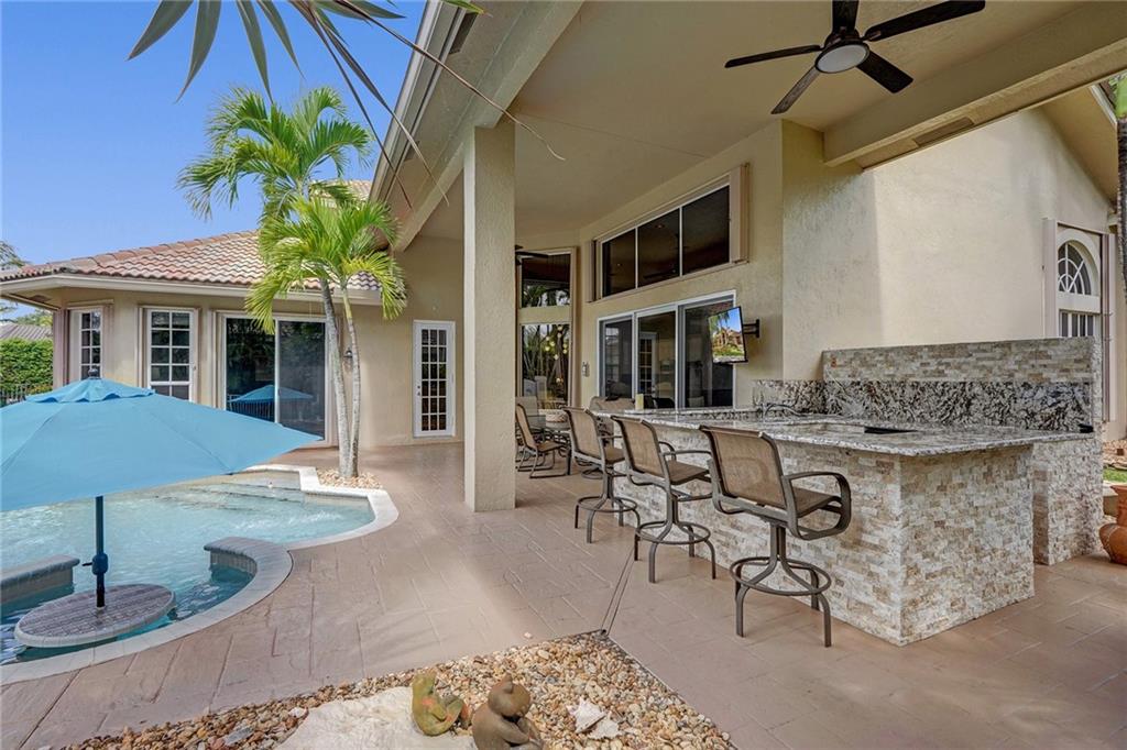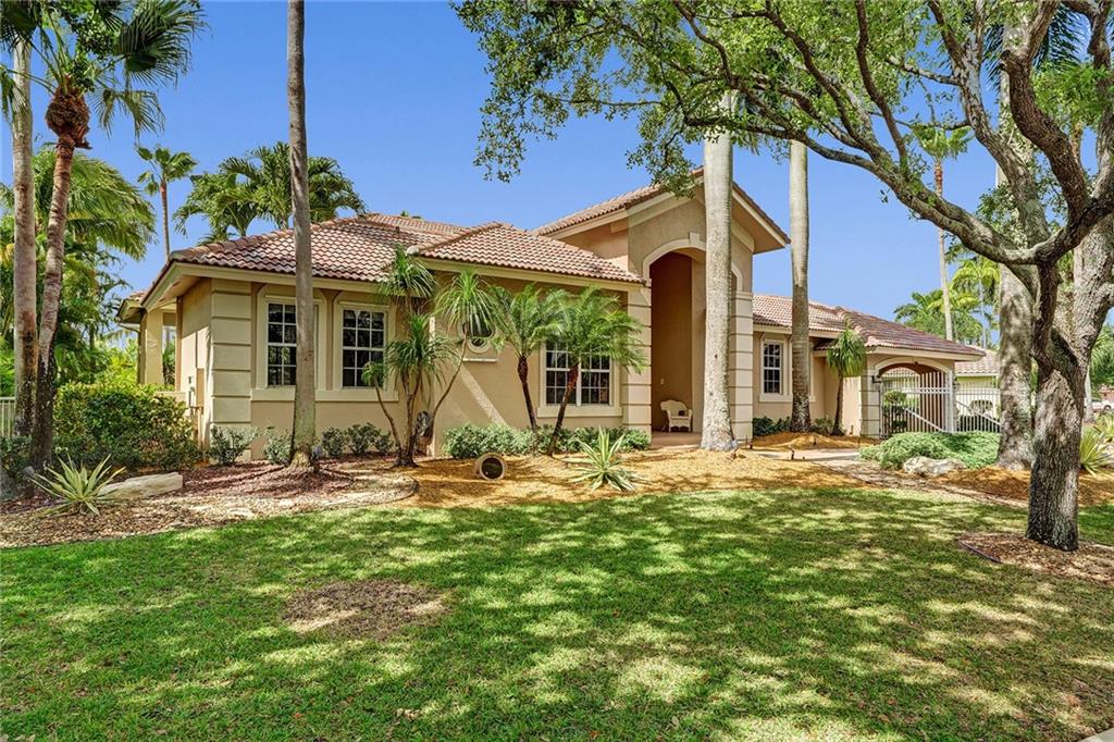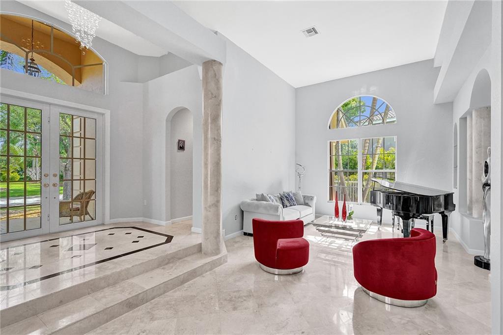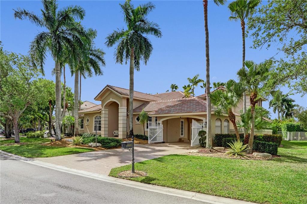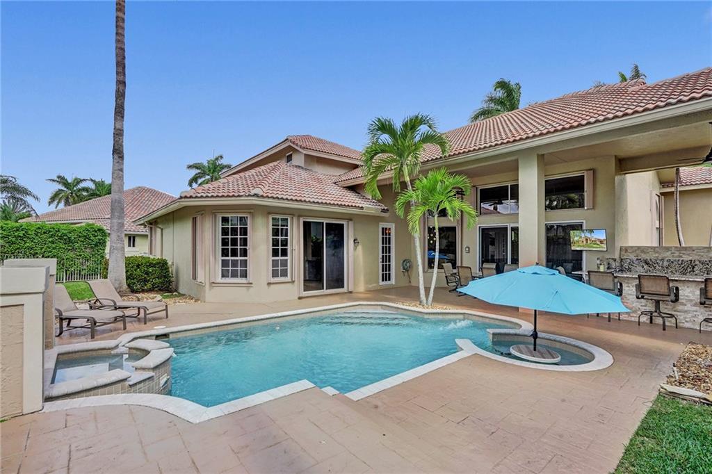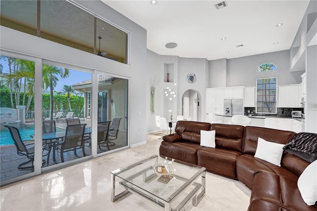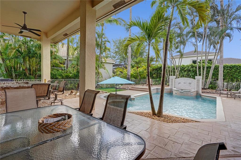 Beautiful upgraded 6br/5 full bath home for a large family. Double Door Entry opens to a home full w/natural light via expansive windows & glass Doors & Volume ceilings. Ideal triple floor plan master suite downstairs w/ an additional 3br & 4bath, second floor boasts 2 br, 1 bath. Large open kitchen & family room great for entertaining w/ spectacular views of the pool area & backyard. Marble floors in living area, newer wood floors in bedrooms, fresh painted. Storm ready impact doors throughout & accordion shutters. Beautiful backyard extensive landscaping, pool & newer bar with u line, fridge+ ice maker & sink on a huge over hang area. Guard gated community, tennis courts, volleyball & park w/ Childs Playground. Top school district walking distance to all A-rated schools. Move in ready..