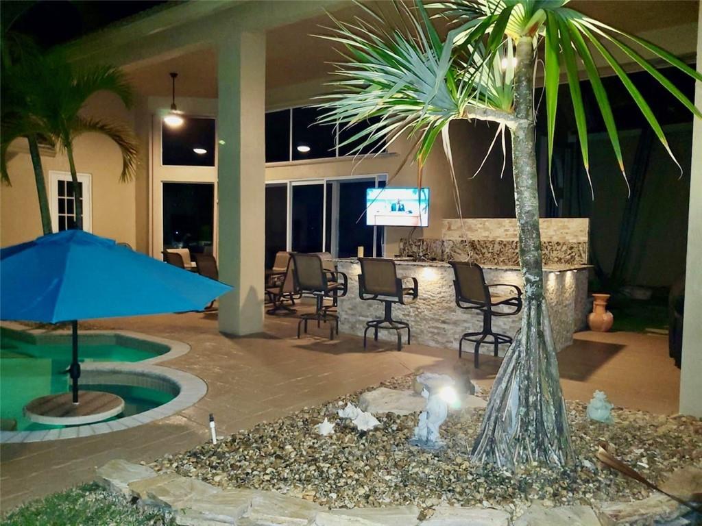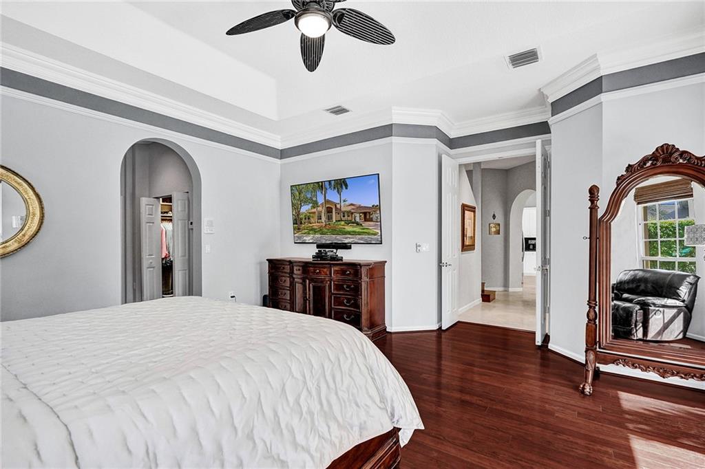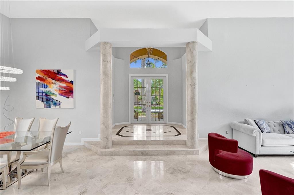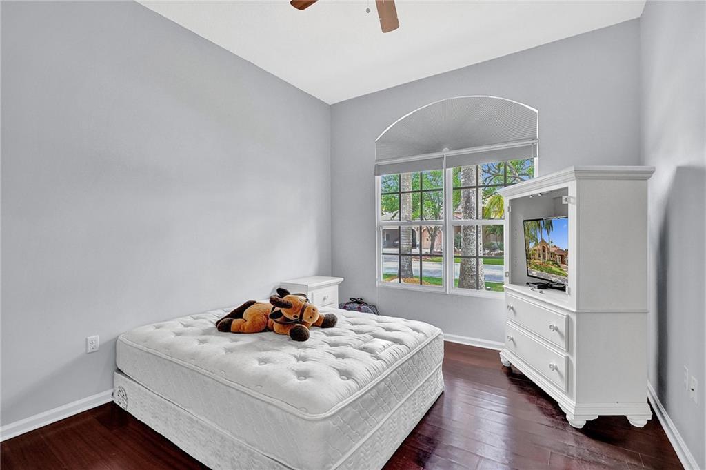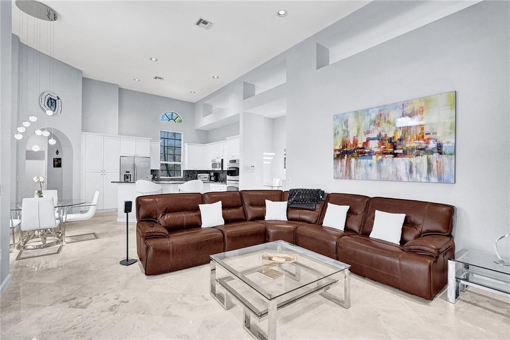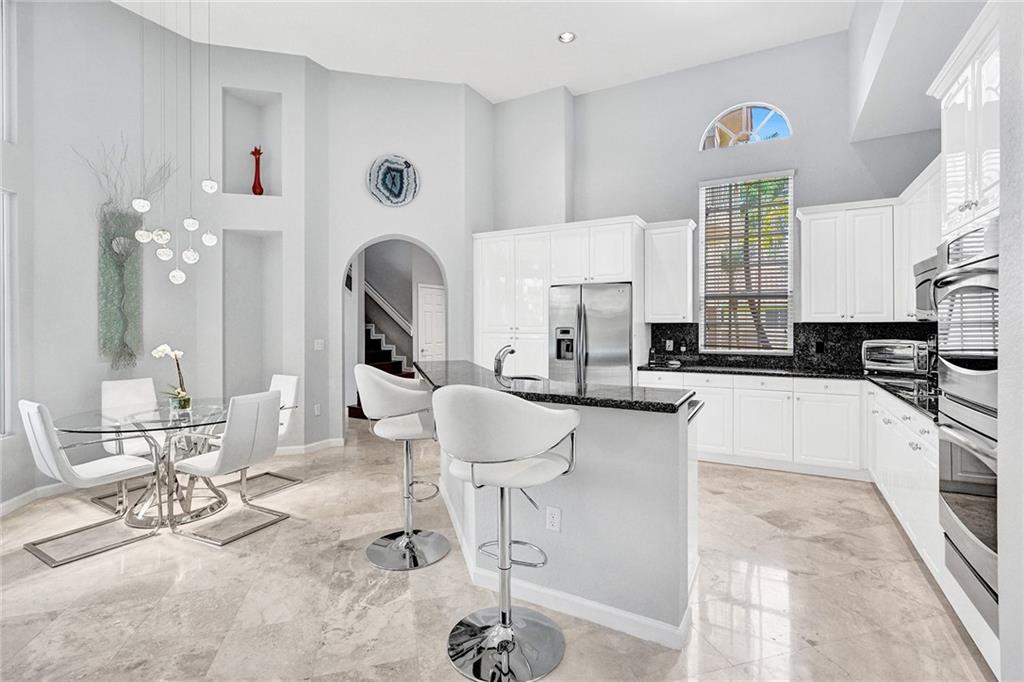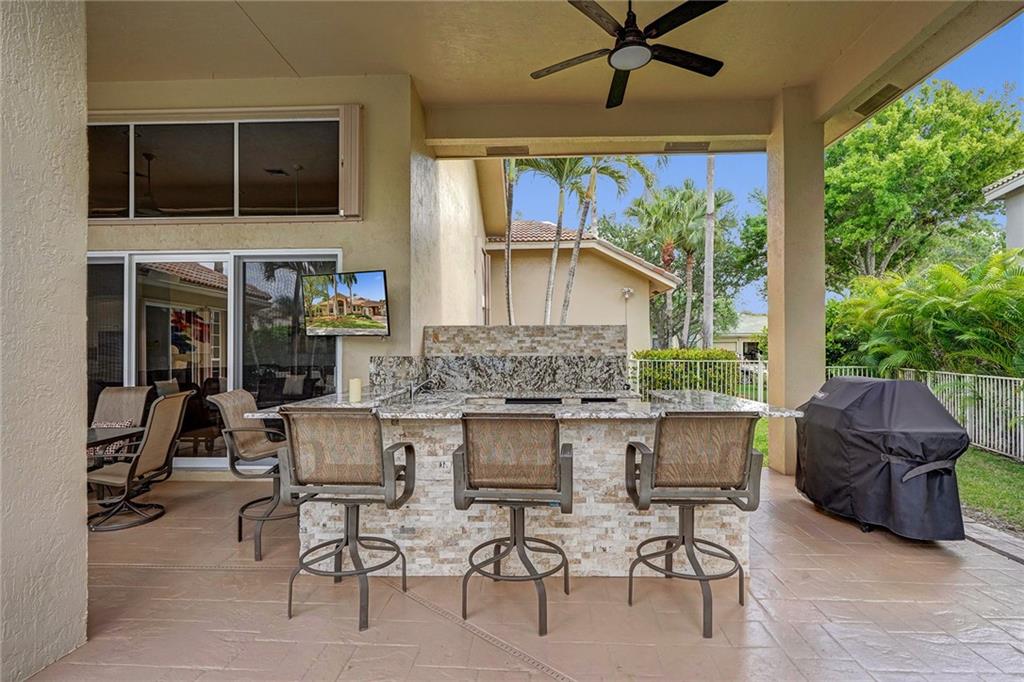 Beautiful upgraded 6br/5 full bath home for a large family. Double Door Entry opens to a home full w/natural light via expansive windows & glass Doors & Volume ceilings. Ideal triple floor plan master suite downstairs w/ an additional 3br & 4bath, second floor boasts 2 br, 1 bath. Large open kitchen & family room great for entertaining w/ spectacular views of the pool area & backyard. Marble floors in living area, newer wood floors in bedrooms, fresh painted. Storm ready impact doors throughout & accordion shutters. Beautiful backyard extensive landscaping, pool & newer bar with u line, fridge+ ice maker & sink on a huge over hang area. Guard gated community, tennis courts, volleyball & park w/ Childs Playground. Top school district walking distance to all A-rated schools. Move in ready..
