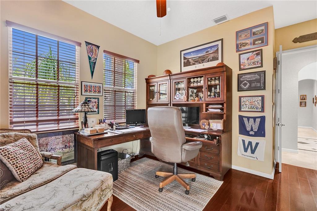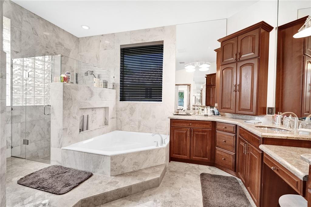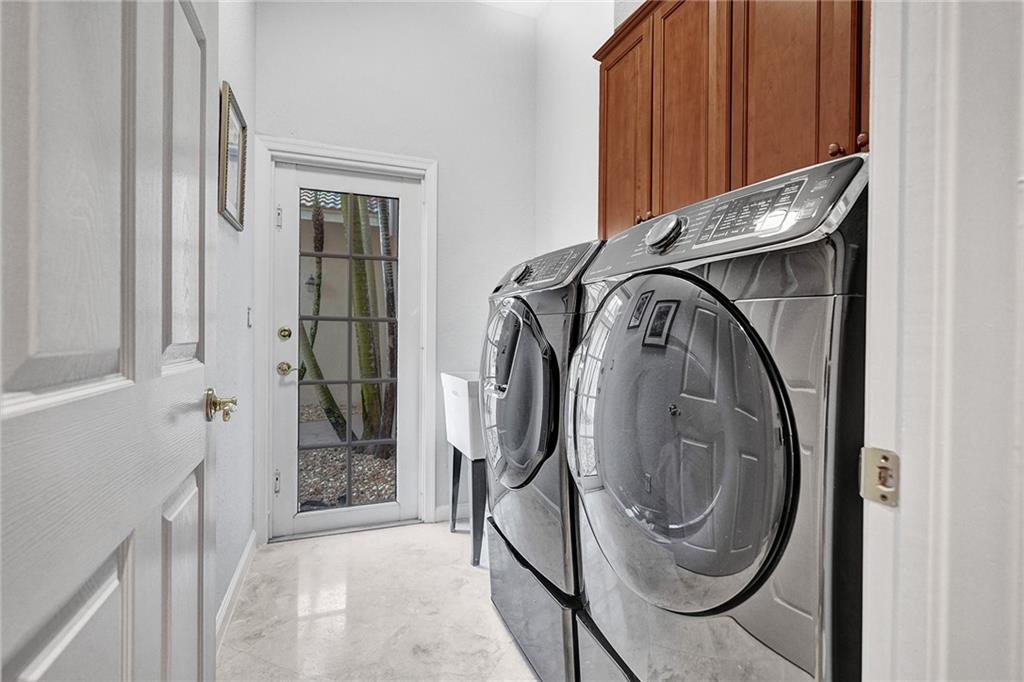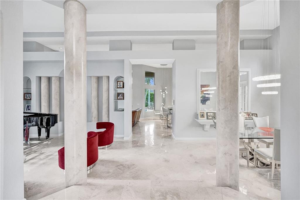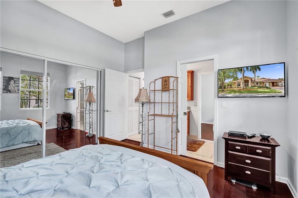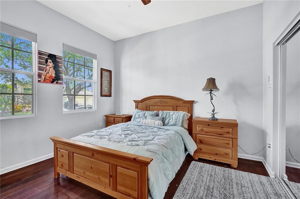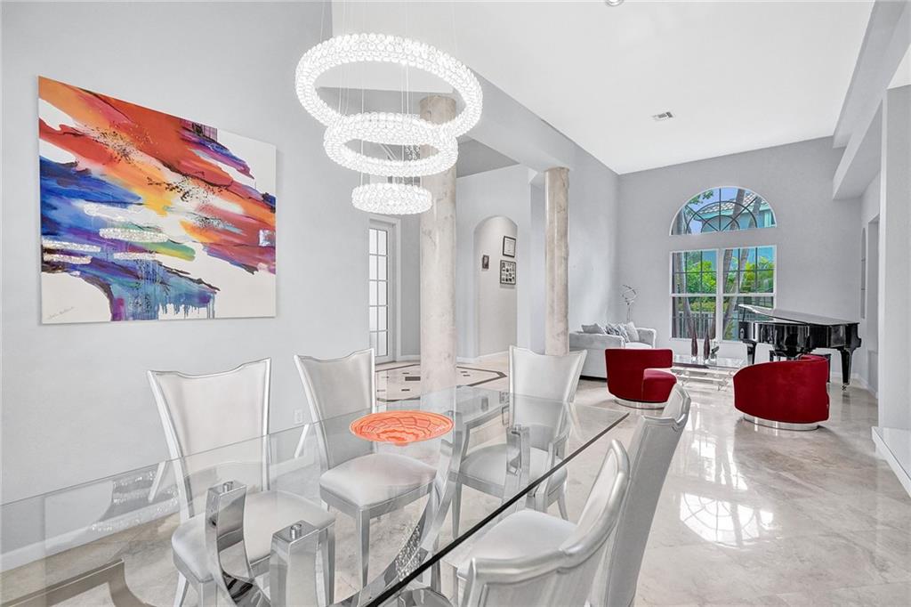 Beautiful upgraded 6br/5 full bath home for a large family. Double Door Entry opens to a home full w/natural light via expansive windows & glass Doors & Volume ceilings. Ideal triple floor plan master suite downstairs w/ an additional 3br & 4bath, second floor boasts 2 br, 1 bath. Large open kitchen & family room great for entertaining w/ spectacular views of the pool area & backyard. Marble floors in living area, newer wood floors in bedrooms, fresh painted. Storm ready impact doors throughout & accordion shutters. Beautiful backyard extensive landscaping, pool & newer bar with u line, fridge+ ice maker & sink on a huge over hang area. Guard gated community, tennis courts, volleyball & park w/ Childs Playground. Top school district walking distance to all A-rated schools. Move in ready..