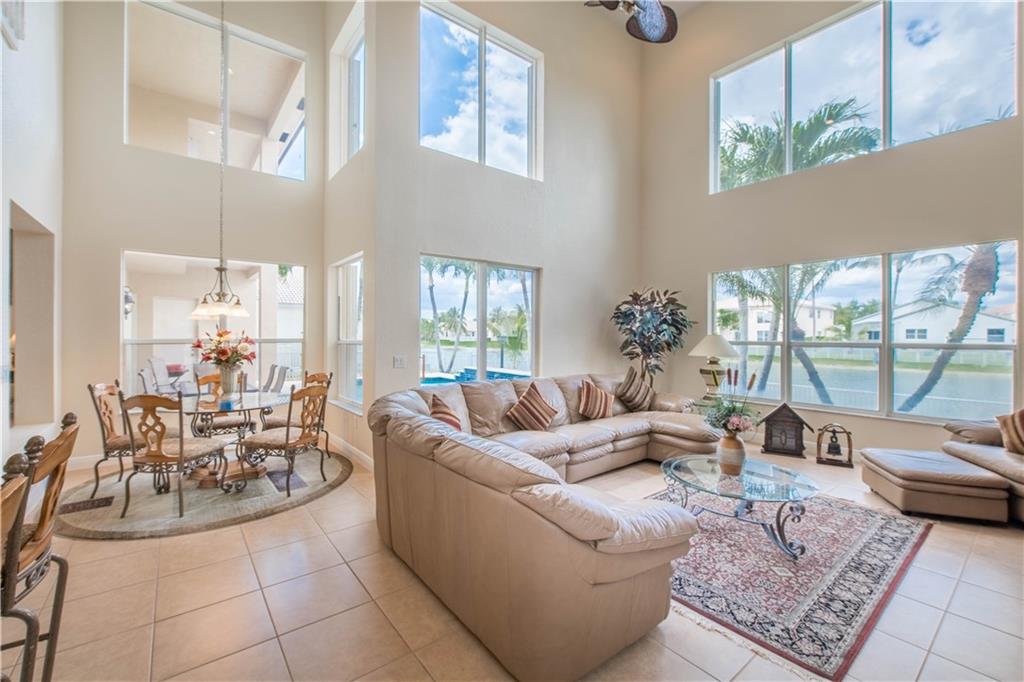 Stunning home with 4 br/3.5 bath, plus big loft and office. Elegant modern open floor plan with lots of sunlight and 22 feet vaulted ceiling. 2 BR downstairs, a mini master with cabana bath and additional bedroom. Gourmet kitchen with wooden cabinets, granite counter tops. New interior paint, new water heater , new a/c unit and accordion shutters. Gorgeous pool 15X30 with spacious backyard overlooking water front views, perfect for entertainment.