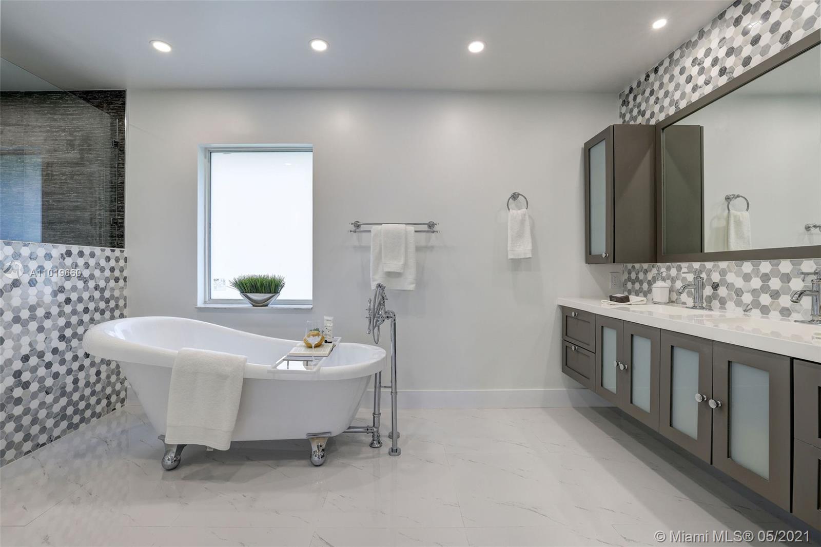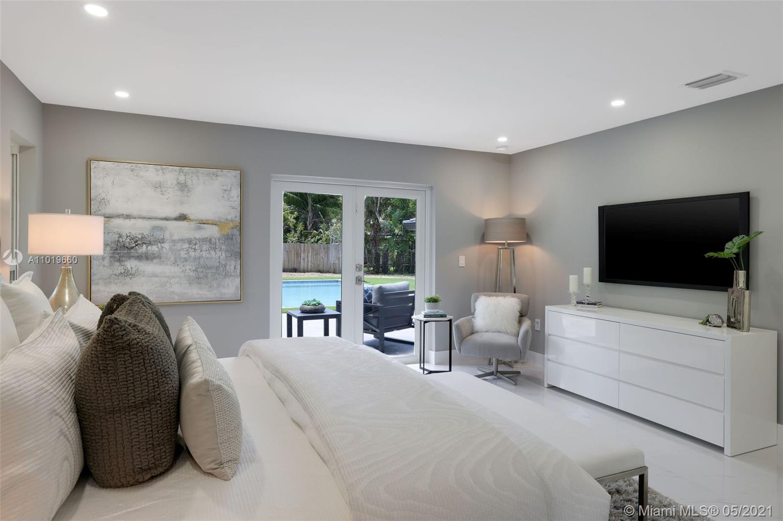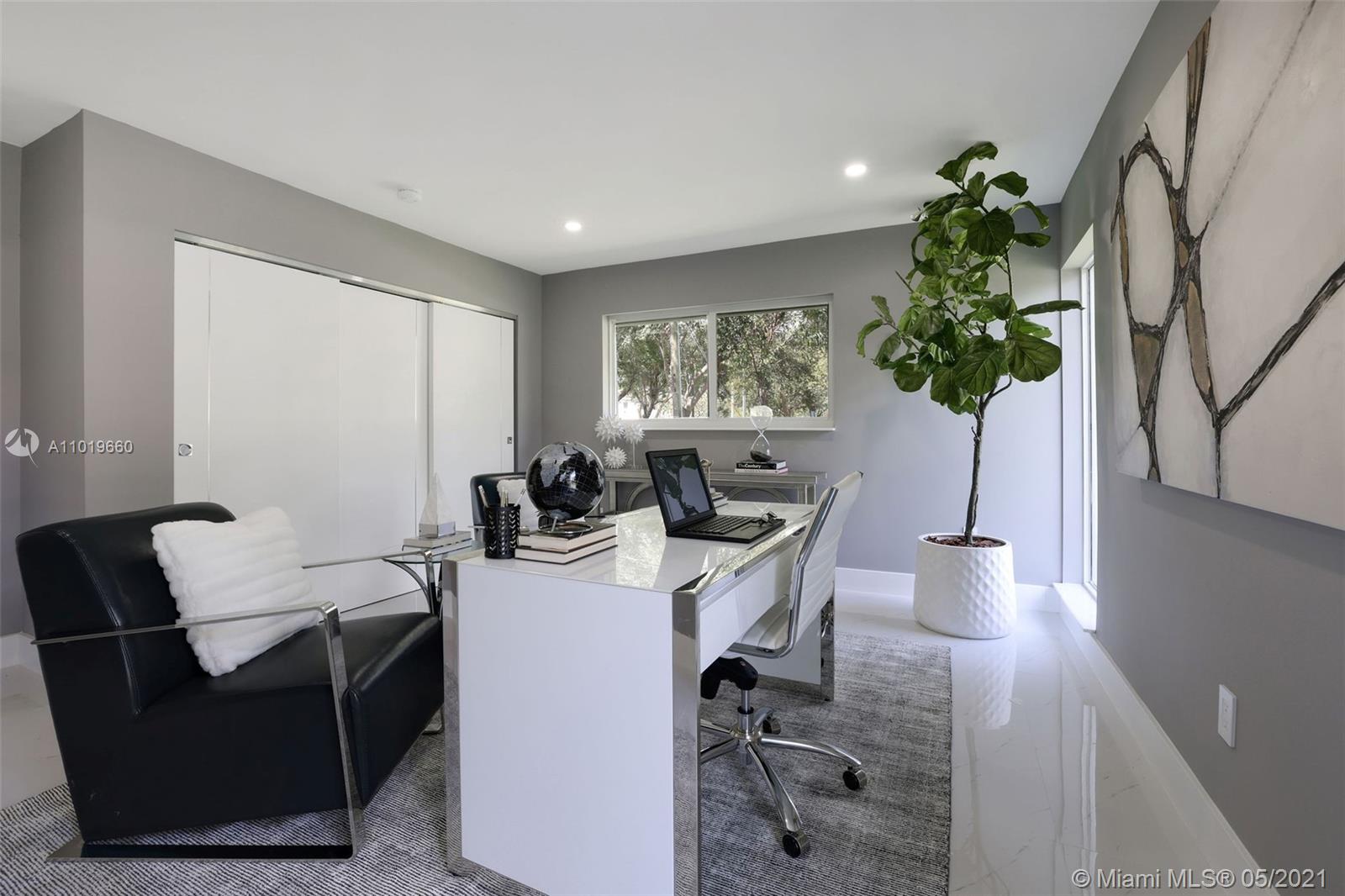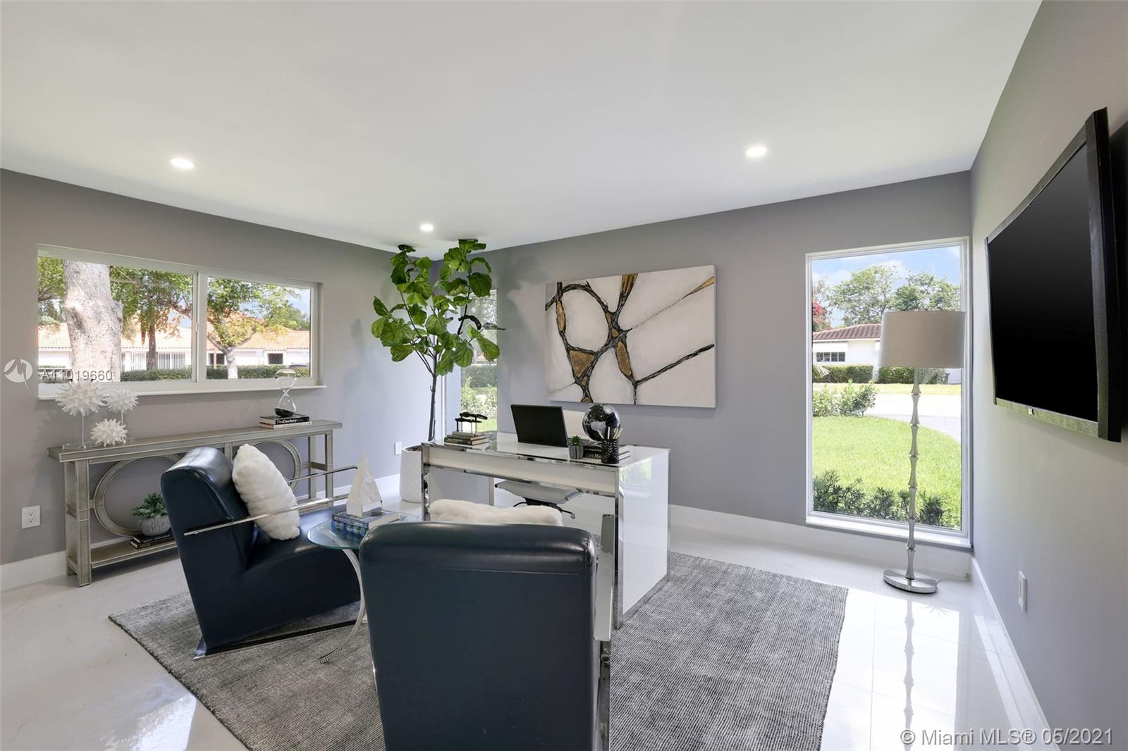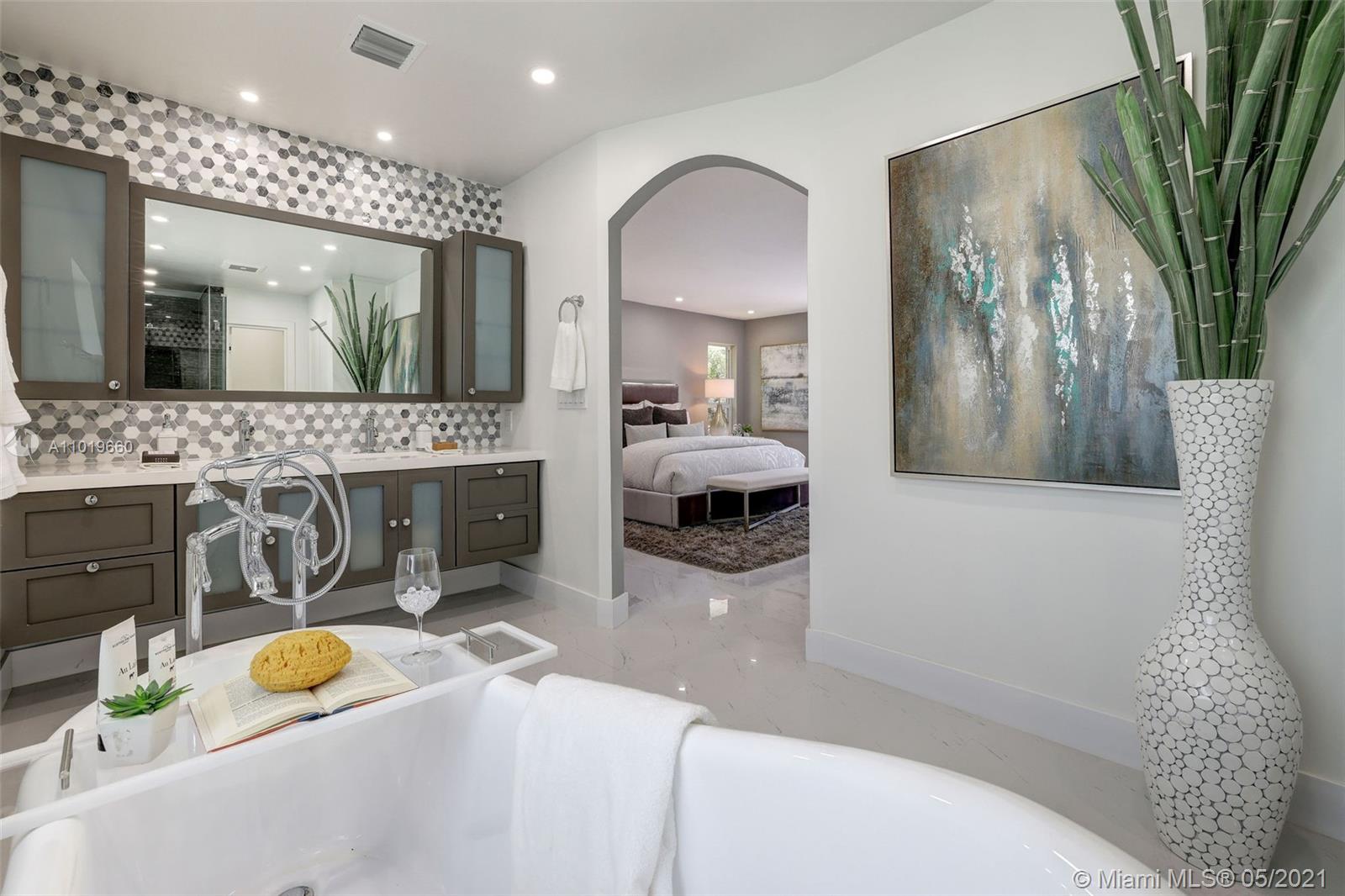Miami Shores Pool Home! This jewel is situated on a sprawling 1/3 acre corner lot. Completely gutted and tastefully renovated. Just completed - May, 2021. Must see! This gorgeously finished 4 Bed/2.5 bath residence features a bright and spacious design providing abundant natural light, appealing white porcelain tile flooring throughout, a large 2 car garage, impact windows/doors, and sleek spa-inspired bathrooms. The chef-inspired kitchen is equipped with brand new Bosh appliances, quartz counter tops and custom cabinetry. Central kitchen island with bar seating and separate dining space allow for numerous spots to entertain. The open floor plan is ideal for indoor/outdoor living. All bedrooms and living spaces open to your newly installed pool and serene patio area with complete privacy.